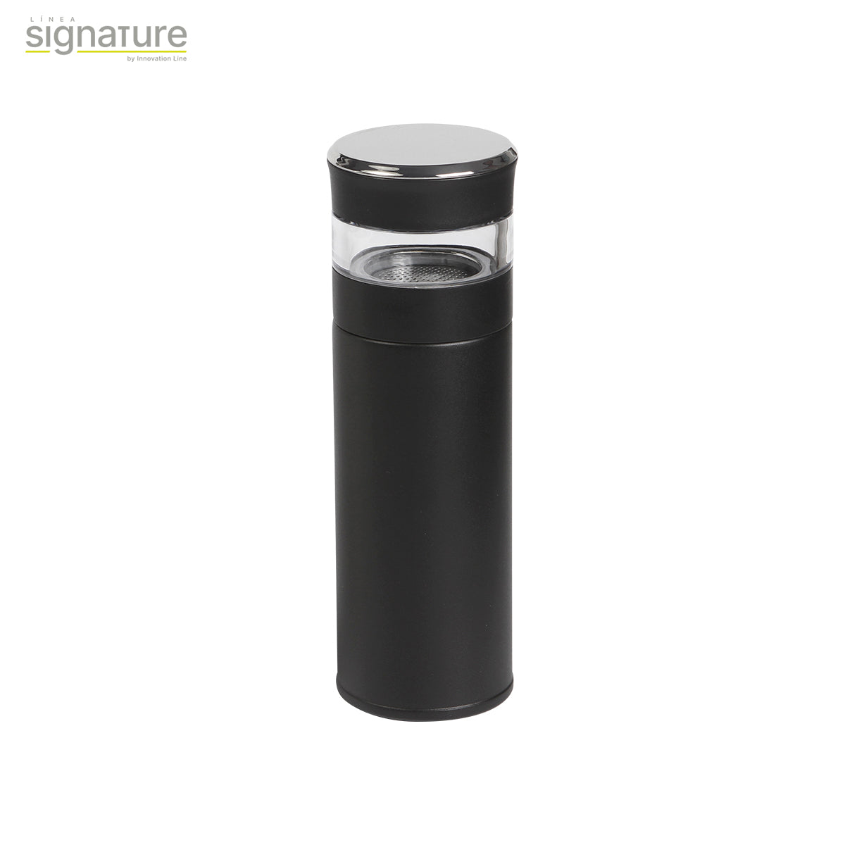 termo de acero inoxidable doble pared con display de temperatura en la tapa, sección para infusiones con rejilla coladora, fabricada en materiales de grado alimenticio, mantiene bebidas frías o calientes por un largo tiempo. no usar en microondas. capacidad de 400 ml. incluye caja de cartón individual.