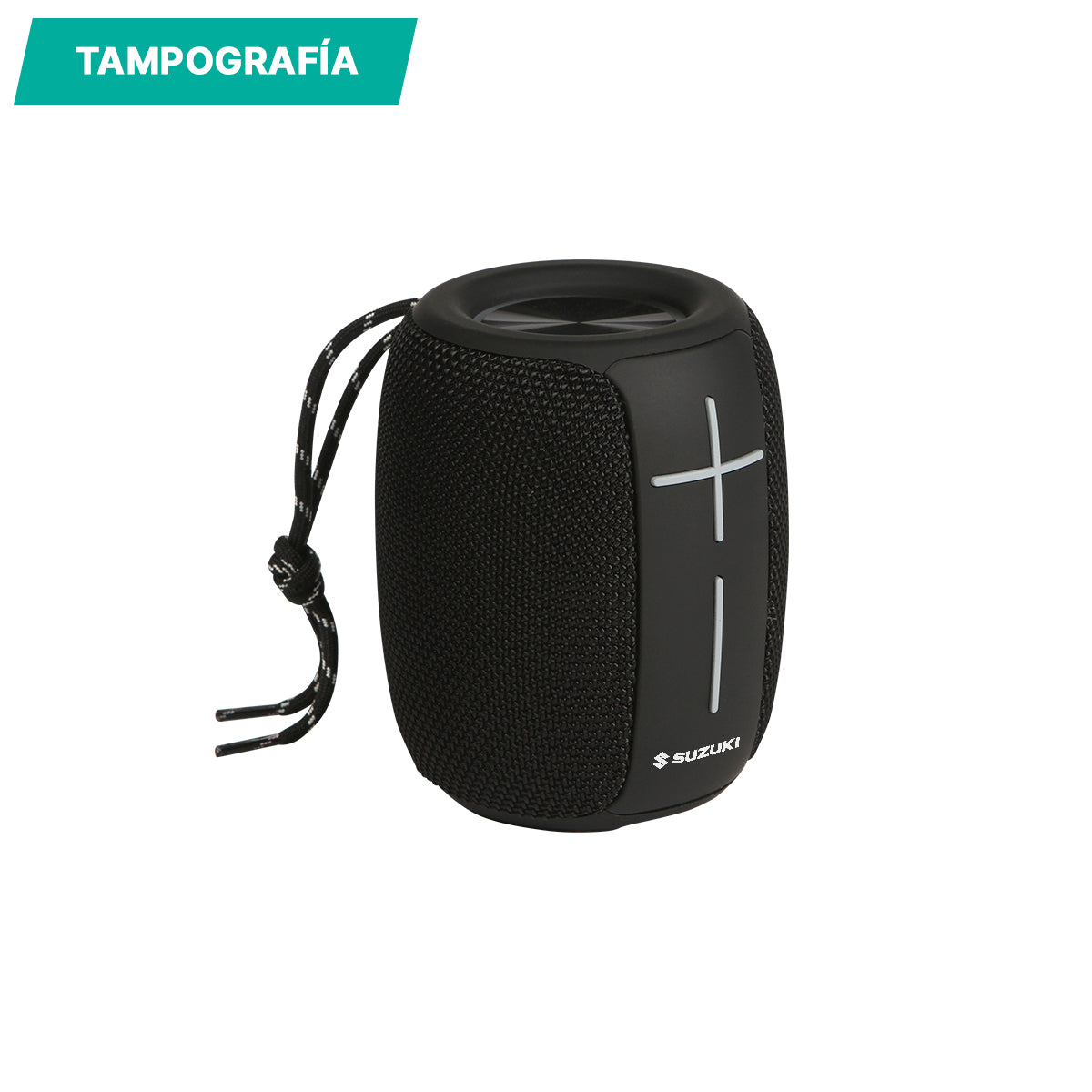bocina con conexión de sonido sin cables a prueba de agua fabricada en plástico abs y metal, con cubierta de tela, acabado mate, cordón y luz rgb 3 modos, dispositivo manos libres, radio fm con sintonizador, ranura para tarjeta tf, ranura usb e ipx4 a prueba de agua. incluye cable de carga usb y caja de cartón individual.