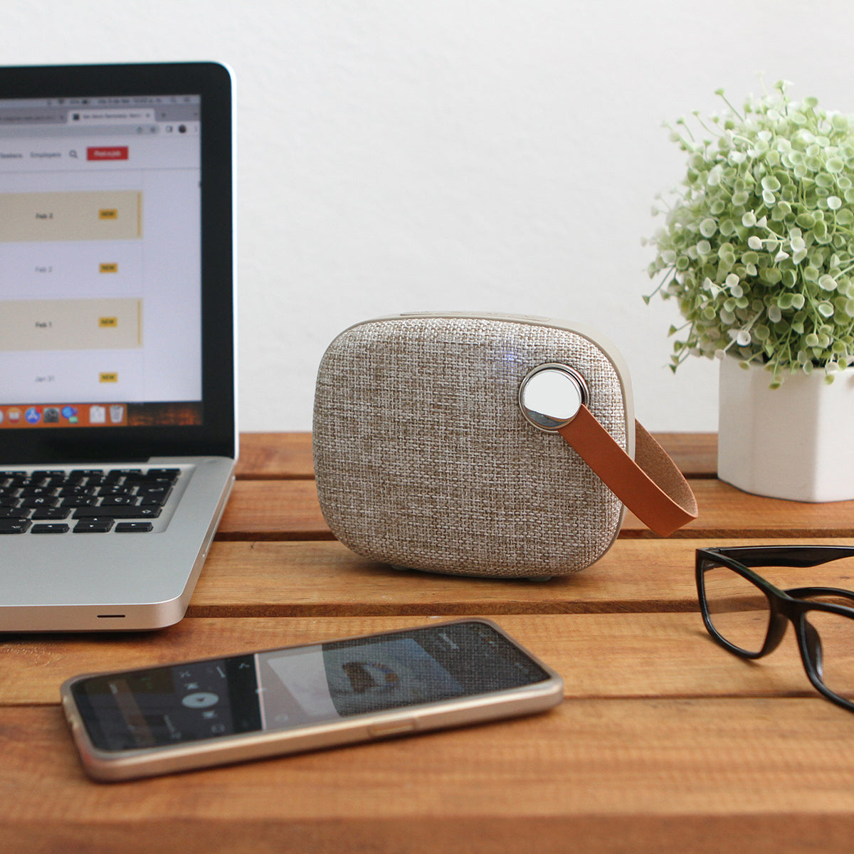 bocina con conexión de sonido sin cables, radio fm, cuenta con ranura para tarjeta micro sd, ranura para puerto usb, entrada auxiliar 3.5mm. acabado plástico y cubierta de tela con asa tipo piel para fácil transporte. su diseño compacto es ideal para llevar la música contigo a cualquier parte. incluye cable de carga usb y caja de cartón individual.