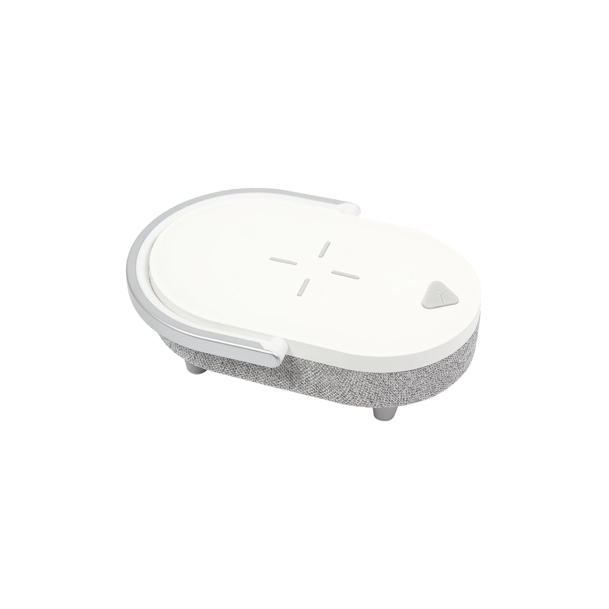 bocina multifunción con cargador inalámbrico con distancia de carga de 8 mm, soporte para teléfono, lámpara de escritorio con luz ajustable, fabricada en pc (plástico de policarbonato), conexión de sonido sin cables.