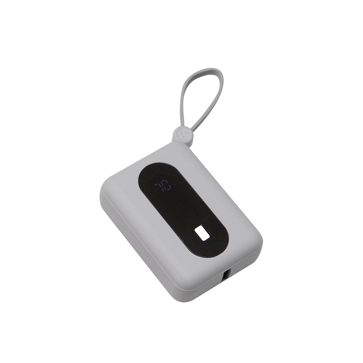 power bank con cable y correa para transportar, con indicador de carga. capacidad de 10,000 mah. la potencia de salida máxima de tipo-c es 20w (5v/3a, 9v/2.2a, 12v/1.6a). diseño ergonómico que lo hace adecuado para viajes.