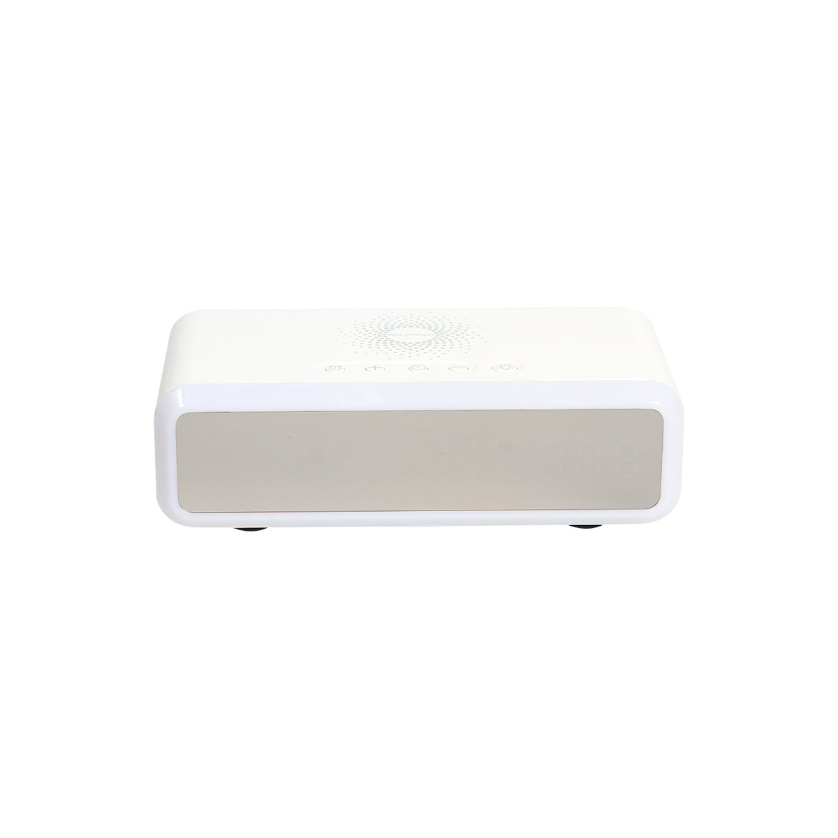 reloj con cargador inalámbrico, función de alarma y luz nocturna, hace de su vida más fácil gracias a su diseño clásico compacto y tamaño adecuado para colocar en su mesa de noche o buró. potencia máxima 15w.