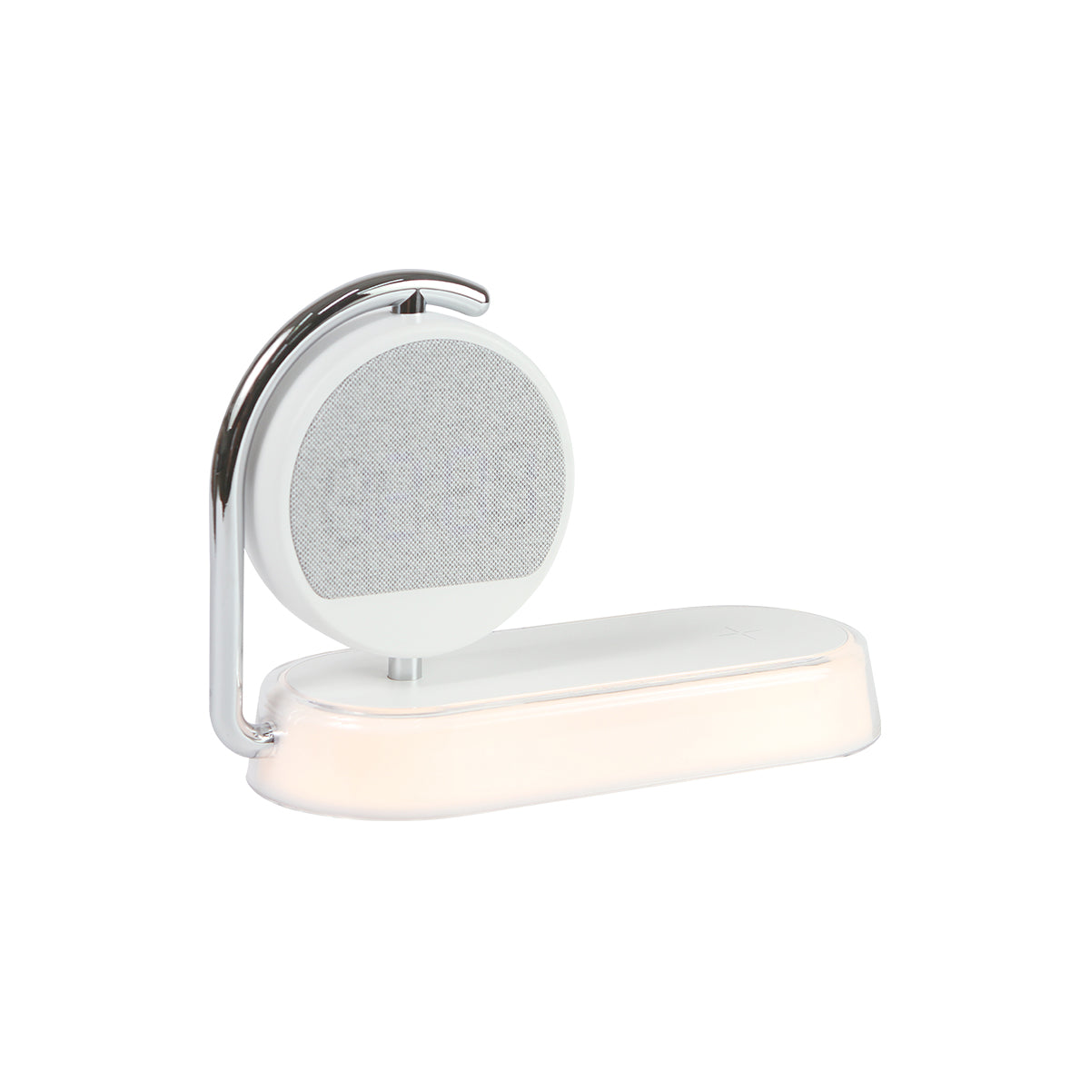 cargador inalámbrico multifunción con potencia de hasta 15w. incluye función de reloj y despetador. además cuenta con lámpara led. producto innovador con diseño elegante. compatible con dispositivos con tecnología qi.