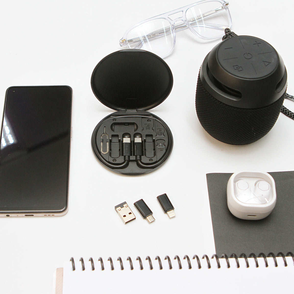 estuche liviano y portátil multifuncional para almacenamiento que ofrece una solución práctica para necesidades de carga y transferencia de datos, incluye: cable usb c macho - usb c macho, con adaptador usb a/micro usb/lightning con usb.