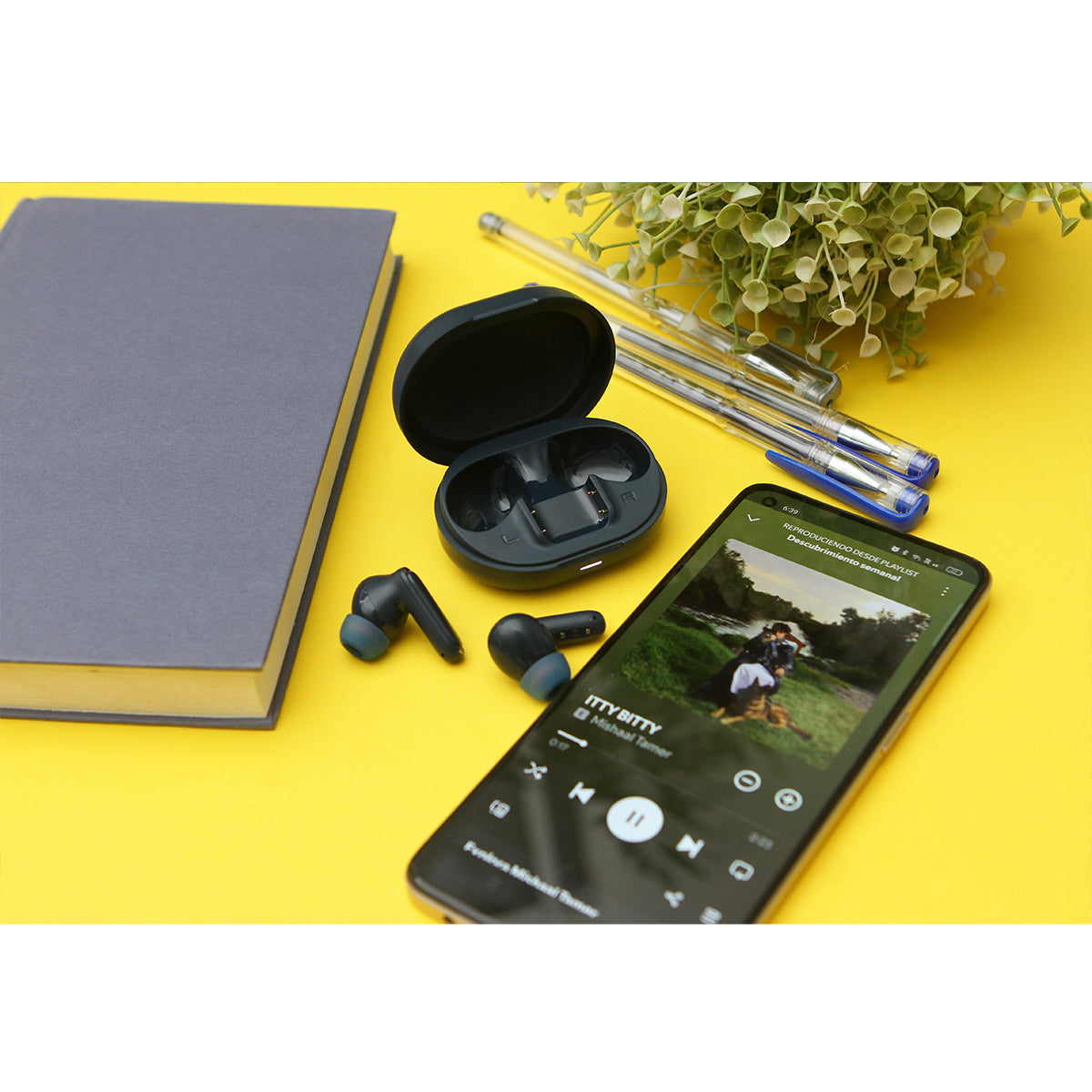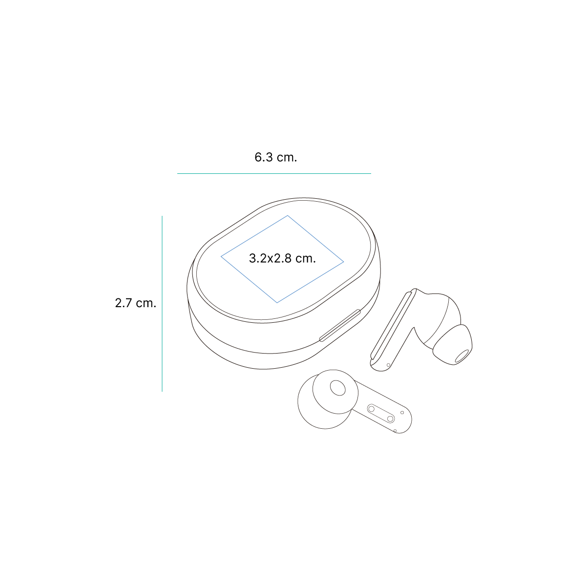 audífonos inalámbricos con estuche, gracias a su diseño práctico y ligero los hace perfectos para llevarlos a todos lados. cuenta con un alcance inalámbrico de 10 metros sin obstáculos. con tiempo de reproducción de siete horas (60% vol.), tiempo de conversación de seis horas en volúmen medio, su tiempo de carga es de aproximadamente 1.5 horas por un puerto tipo c.