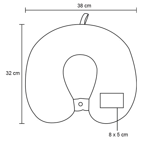 almohada para viaje, de poliéster afelpado con relleno memory foam, cierre, asa y broche de clip.