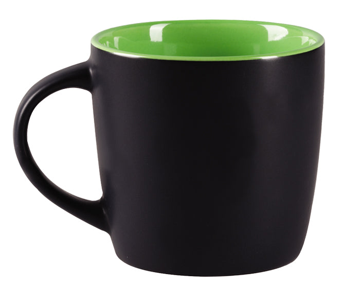 tarro de cerámica con recubrimiento mate en color negro, interior brillante en color. cap. 11 oz. venta en múltiplos de 12.