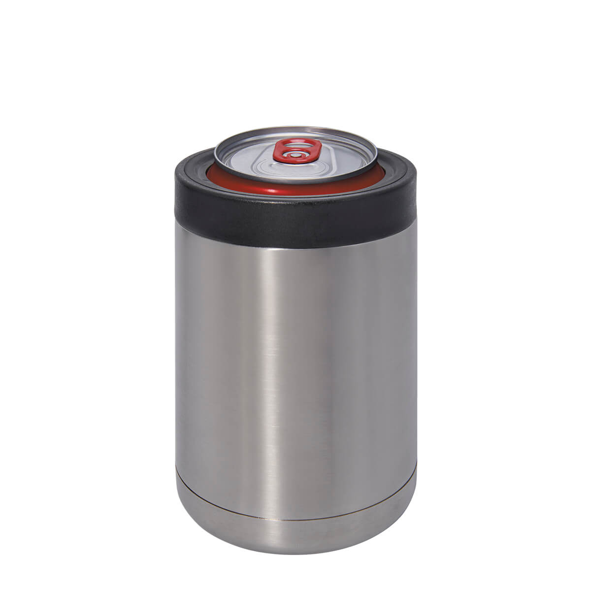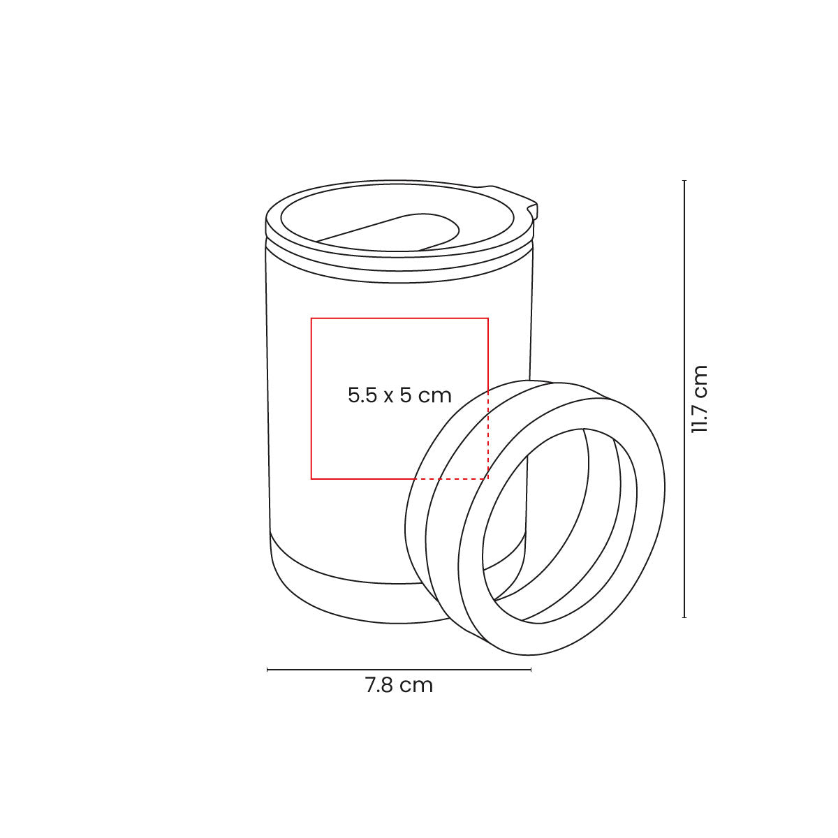 doble pared. cerrado al vacío. pared interna y externa de acero inoxidable. tapa de plástico con válvula de seguridad y tapa para usar de portalatas con tamaño de 355ml. mantiene temperatura caliente 6 hrs y temperatura fría 8 hrs aproximadamente. incluye caja individual.