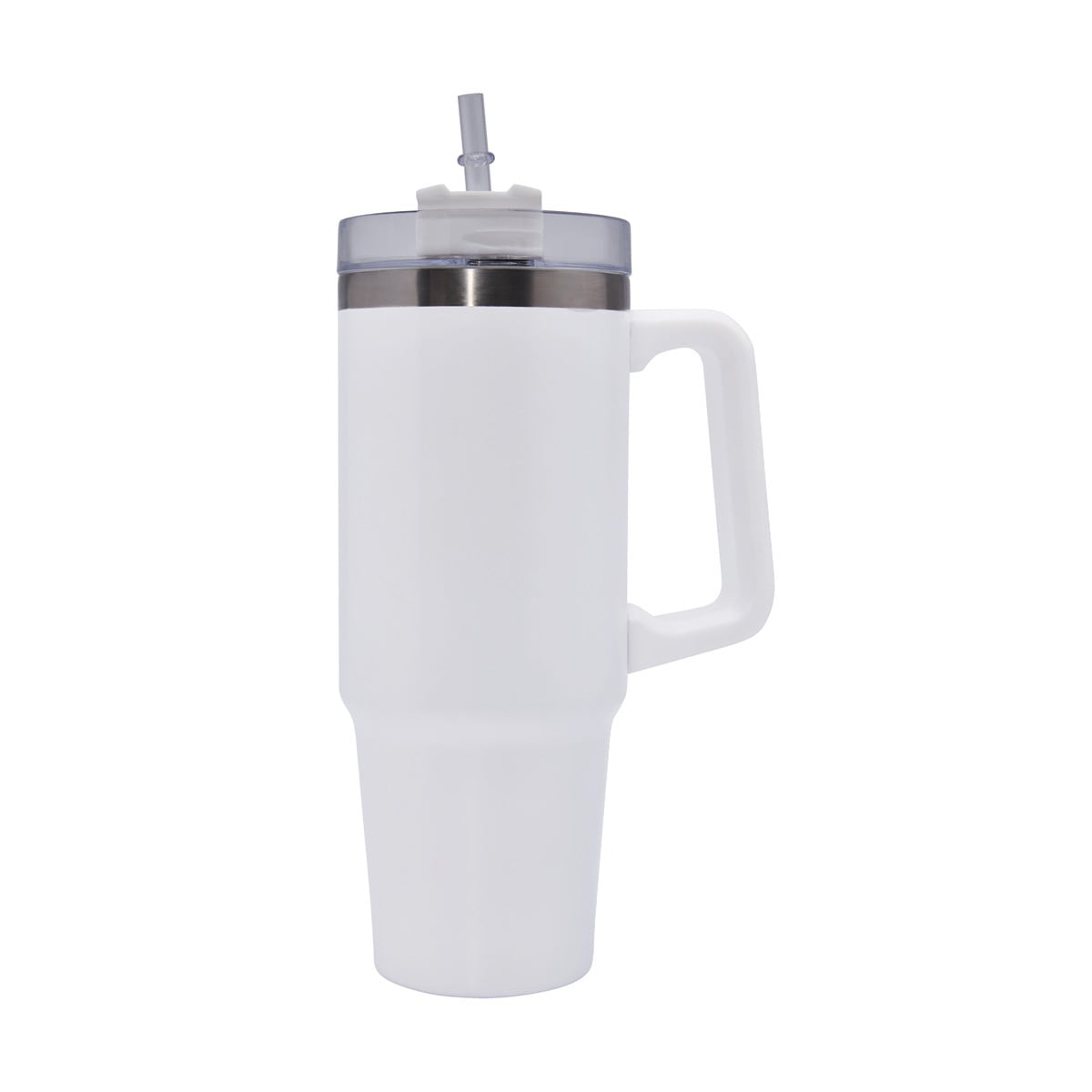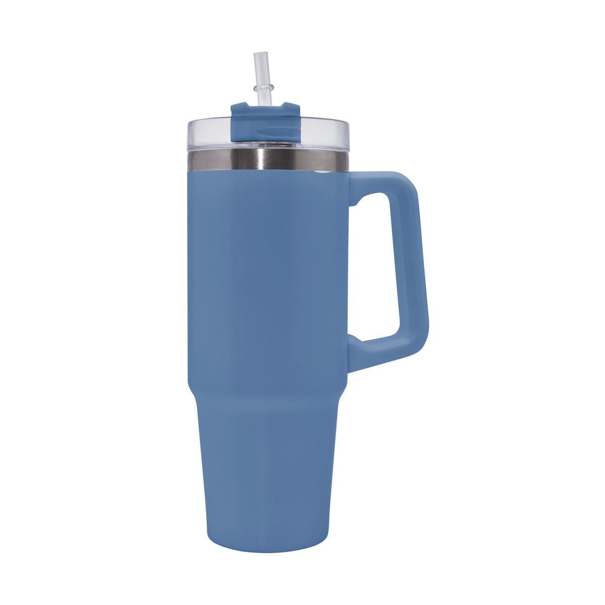 doble pared. cerrado al vacío. pared interna y externa acero inoxidable. tapa de plástico con cierre de rosca y sobretapa giratoria de tres posiciones con ranura para popote. incluye popote y asa de plástico. mantiene temperatura caliente 6 hrs y temperatura fría 8 hrs aproximadamente. incluye caja individual.
