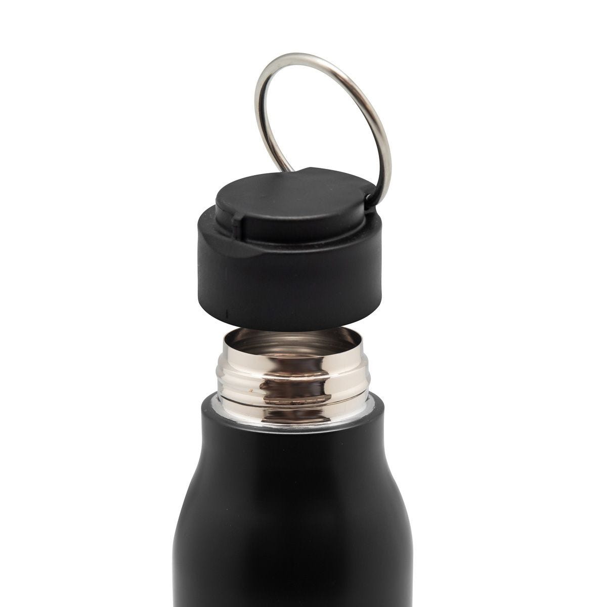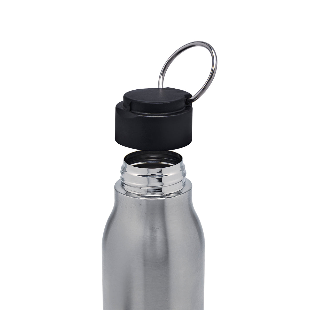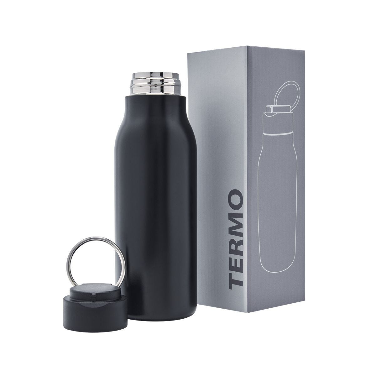 cilindro metálico de una pared y tapa de plástico con cierre de rosca. incluye aro metálico en la tapa que funciona como asa. terminado mate. incluye caja individual.