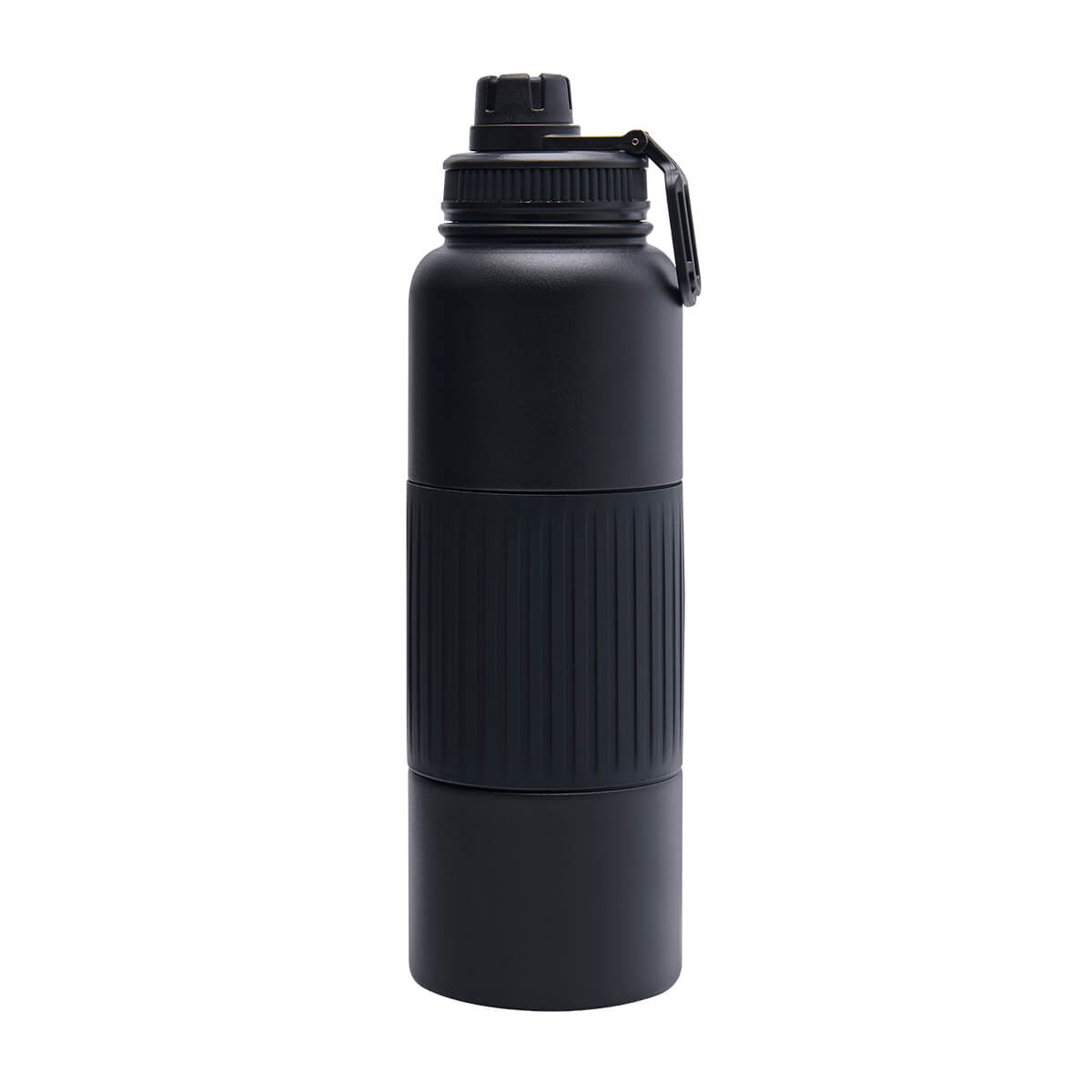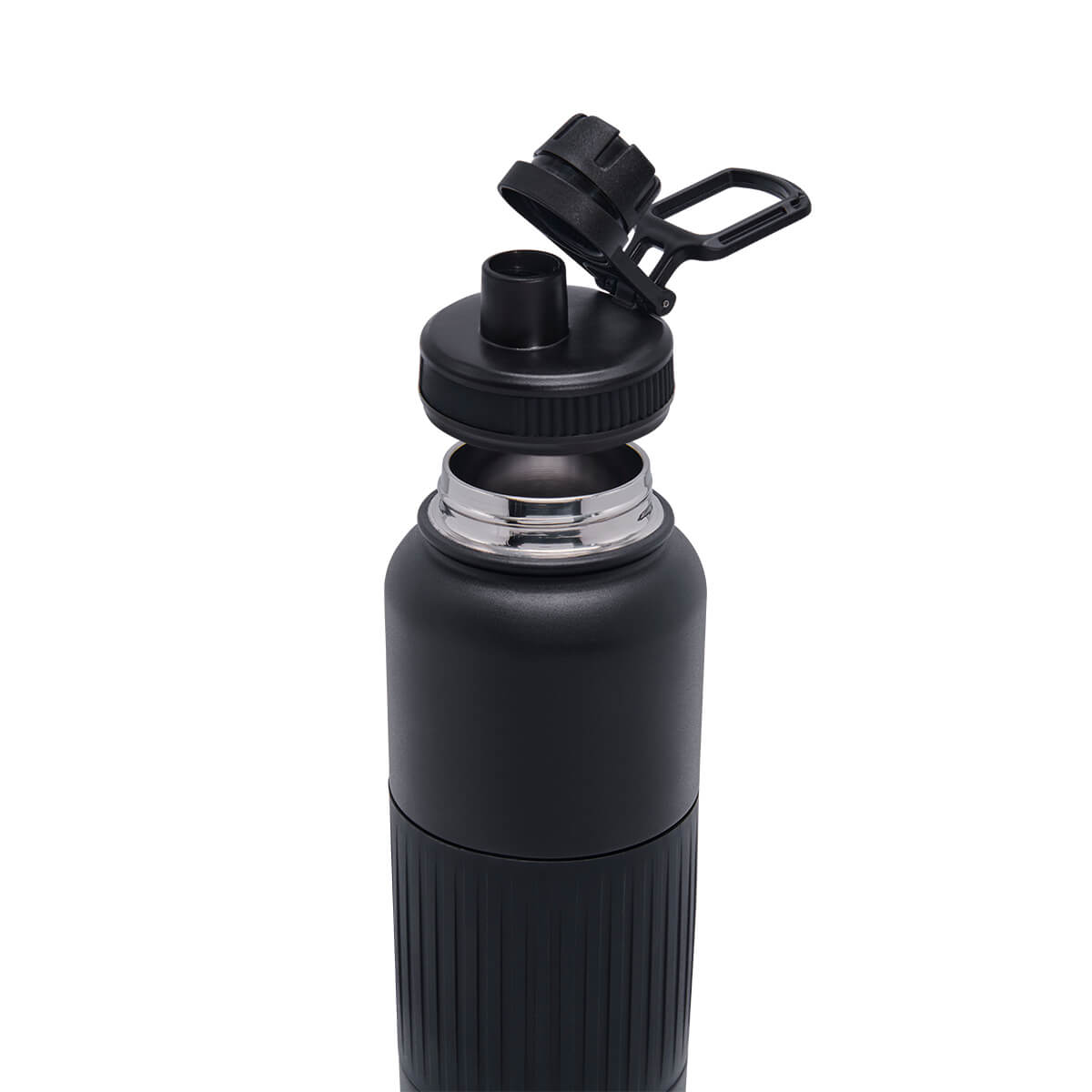 doble pared. cerrado al vacío. pared interna y externa acero inoxidable. cuenta con manga de silicón. terminado tipo rugoso. tapa de plástico con doble boquilla y asa. mantiene temperatura caliente 6 hrs y temperatura fría 8 hrs aproximadamente. incluye caja individual.