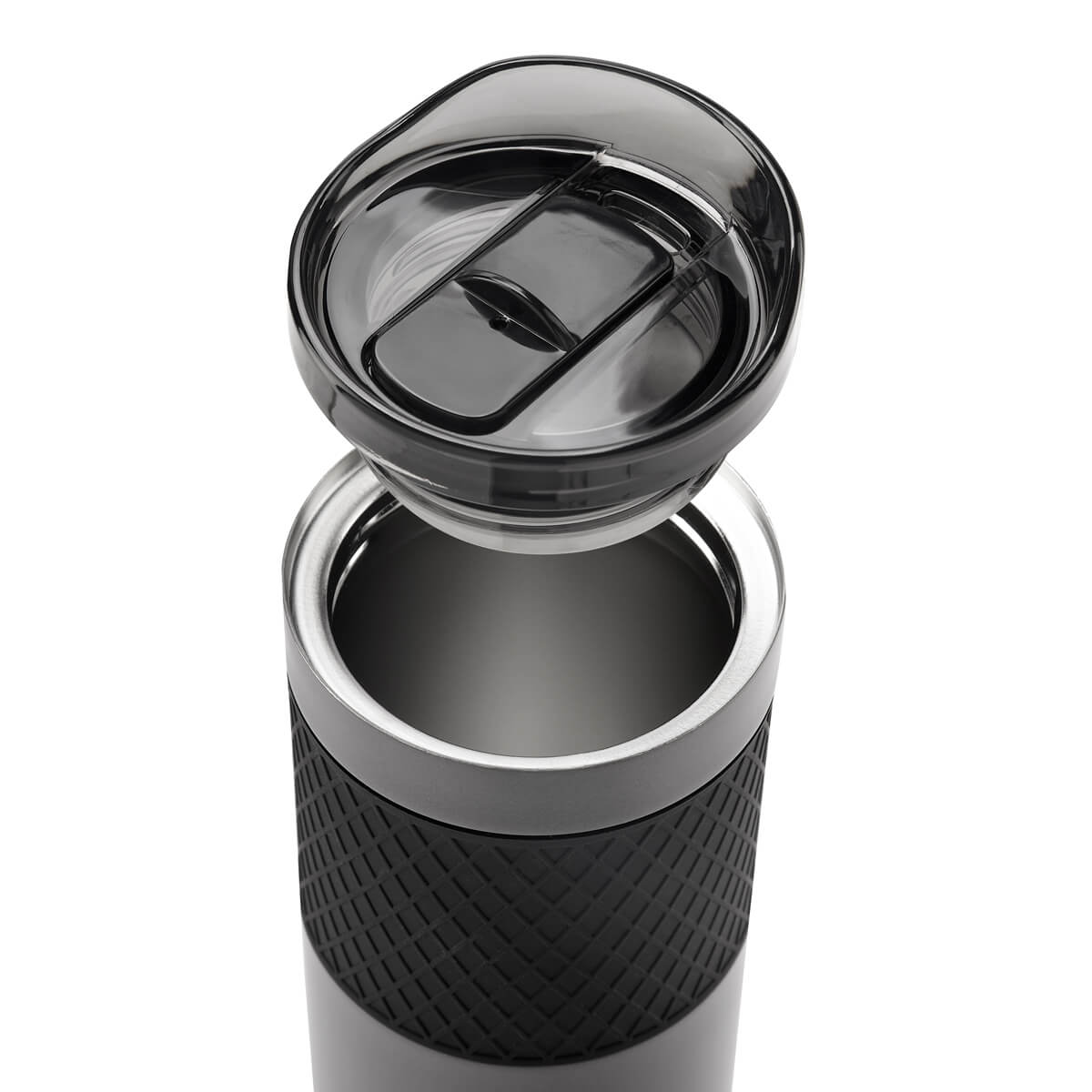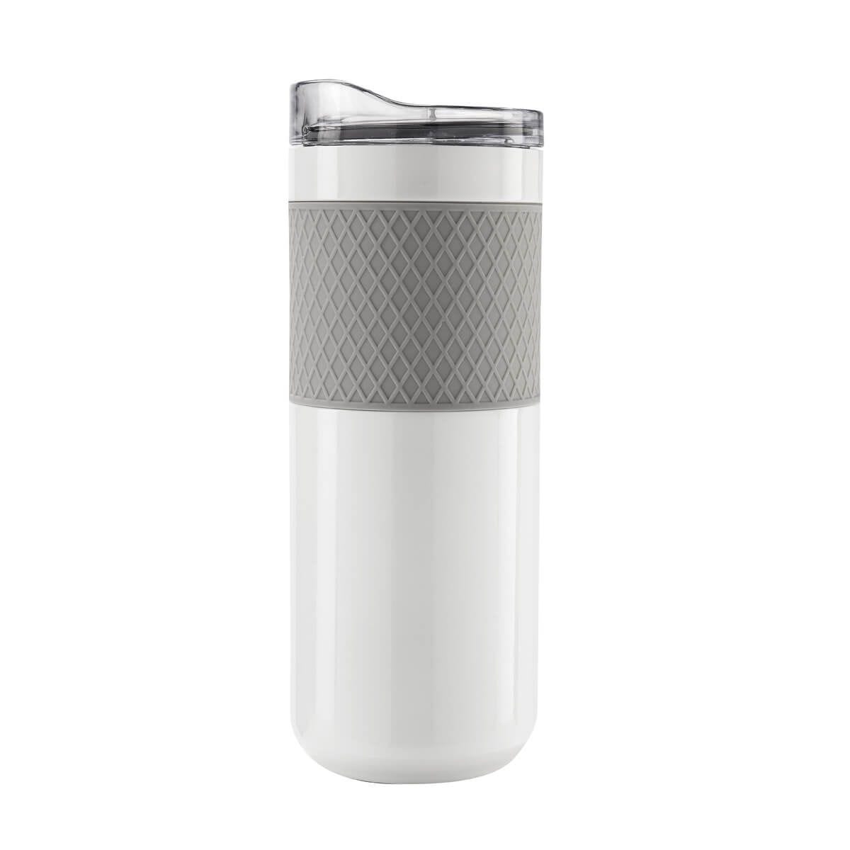 doble pared. cerrado al vacío. pared interna y externa de acero inoxidable. incluye tapa de plástico con cierre de rosca y válvula de seguridad. banda de silicón texturizada antiderrapante. mantiene temperatura caliente 6 hrs y temperatura fría 8 hrs.incluye caja individual.