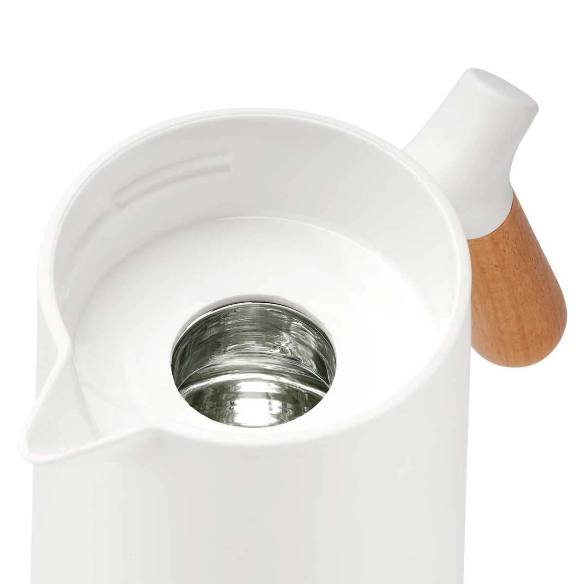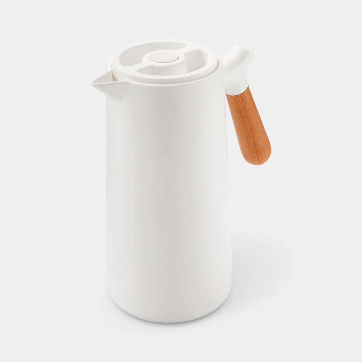 jarra térmica doble pared. interior de vidrio y exterior de plástico. tapa con botón dispensador y asa de bambú. base removible con sistema de rosca que permite retirar fácilmente el interior para una mejor limpieza. mantiene temperatura caliente y fría 6 hrs. incluye caja individual. el bambú es un producto natural el cual puede presentar variaciones en tonalidades y vetas.