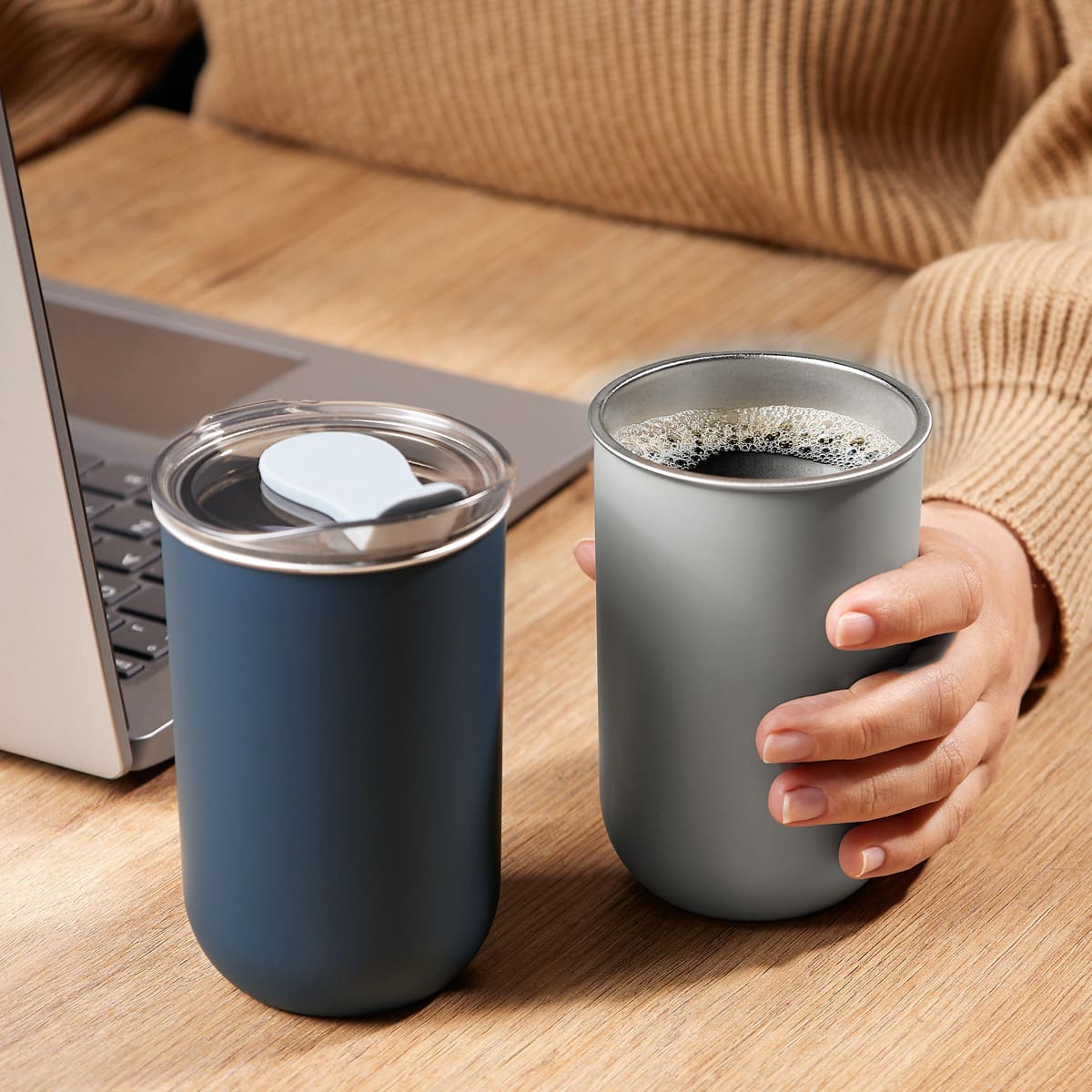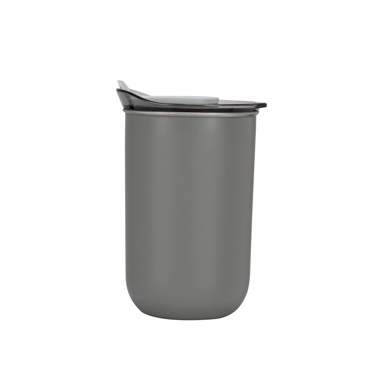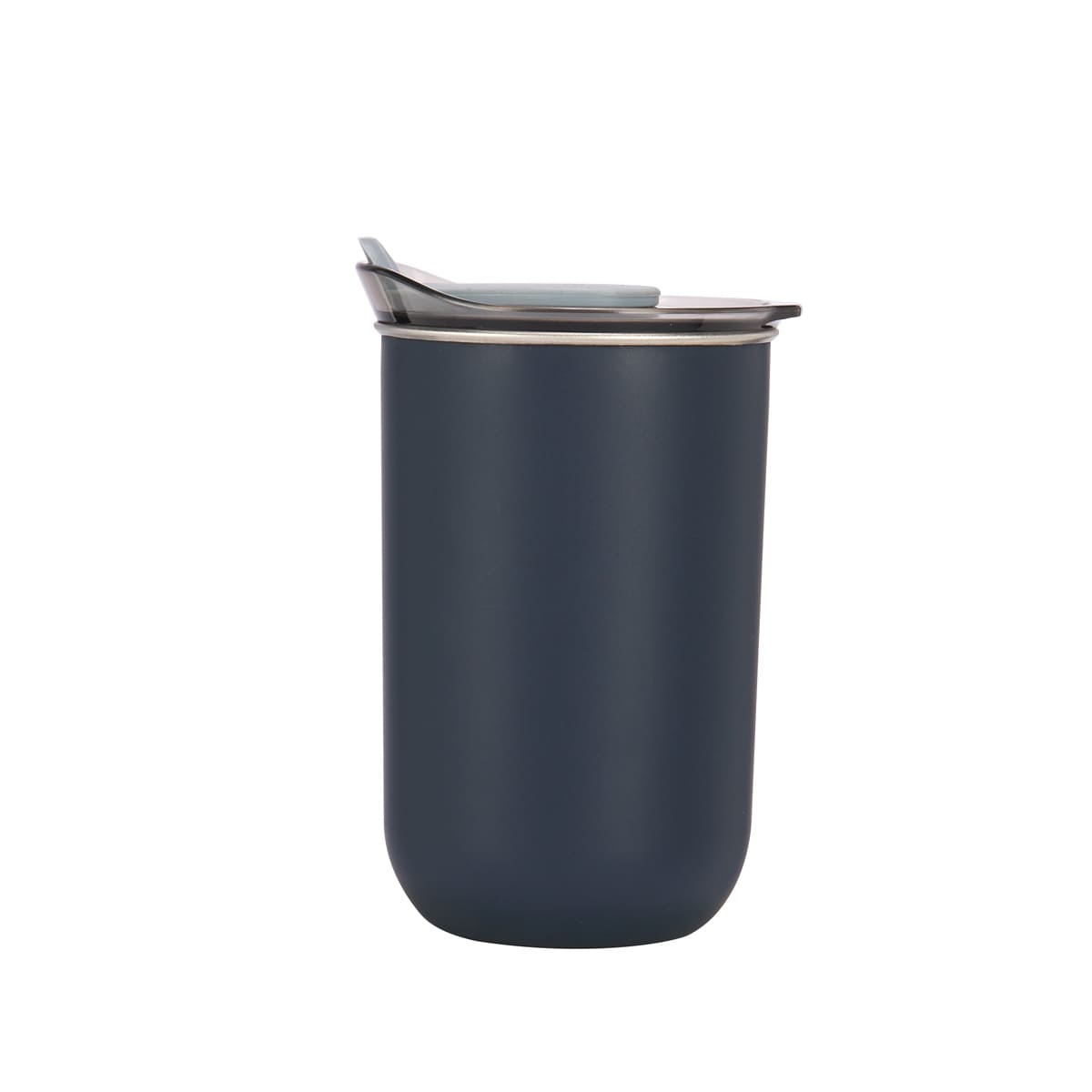 doble pared. pared interna de acero inoxidable y externa de plástico. tapa de plástico con sistema push y sobretapa de silicón movible. incluye caja individual.