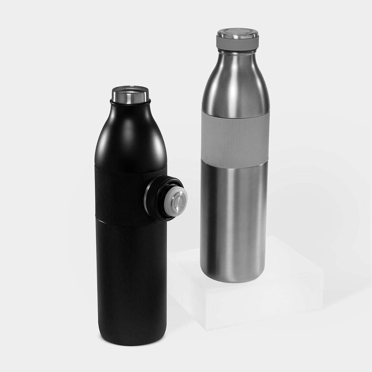 doble pared. cerrado al vacío. pared interna y externa acero inoxidable. tapa con sistema de rosca imantada. banda de silicón texturizada antiderrapante. mantiene temperatura caliente 8 hrs y temperatura fría 12 hrs aproximadamente. incluye caja individual.