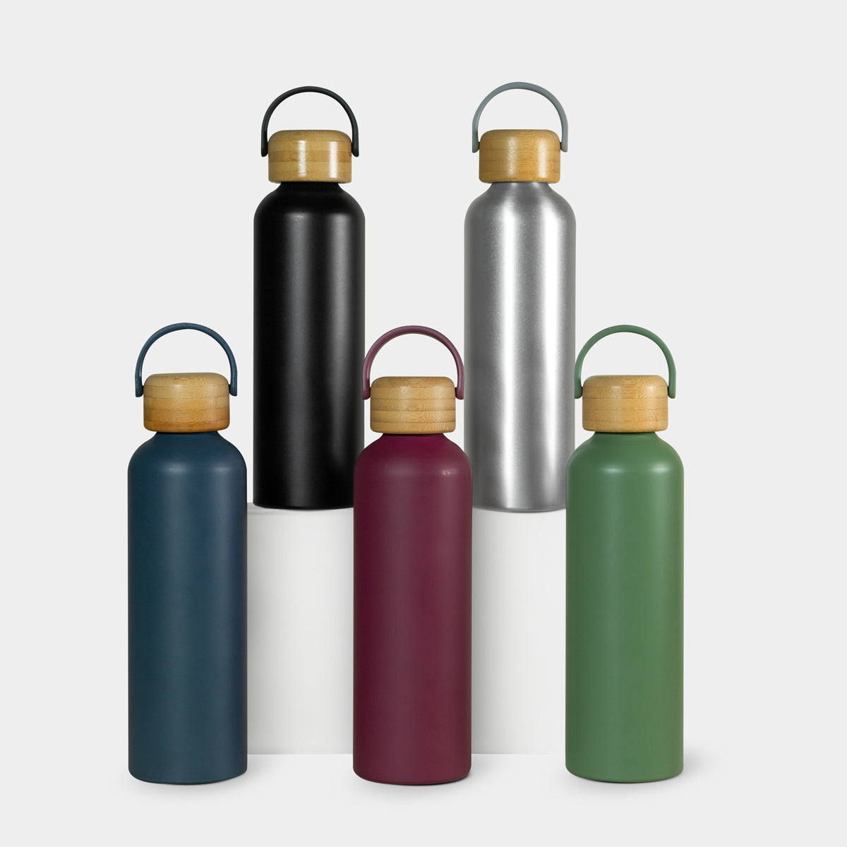 cilindro metálico de una pared. tapa de bambú con cierre de rosca y asa de plástico. terminado mate. incluye caja individual. el bambú es un producto natural el cual puede presentar variaciones en tonalidades y vetas.