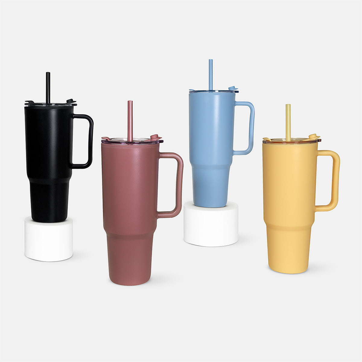 doble pared. pared interna y externa de plástico. tapa de plástico con cierre de push. sobretapa de silicón con ranura especial para popote. incluye popote y caja individual.