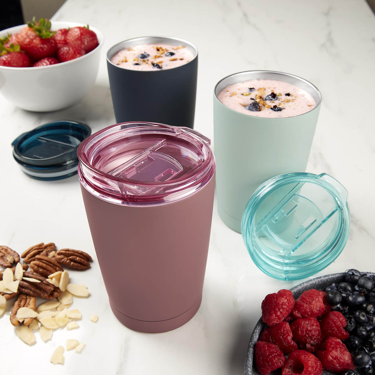 termo doble pared. cerrado al vacío. pared interna y externa de acero inoxidable. tapa de plástico con válvula de seguridad y diseño ergonómico en la boquilla. su cuerpo con terminado rubber lo hace suave al tacto y ayuda a tener un mejor agarre. mantiene la temperatura caliente 6 hrs y temperatura fría 12 hrs aproximadamente. capacidad de 12 oz. base de 7.2 cm de diametro incluye caja individual.