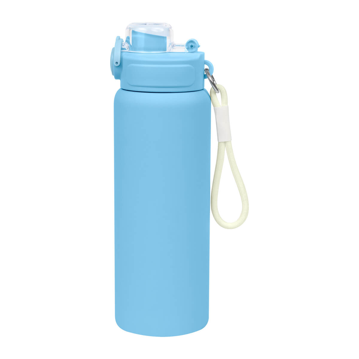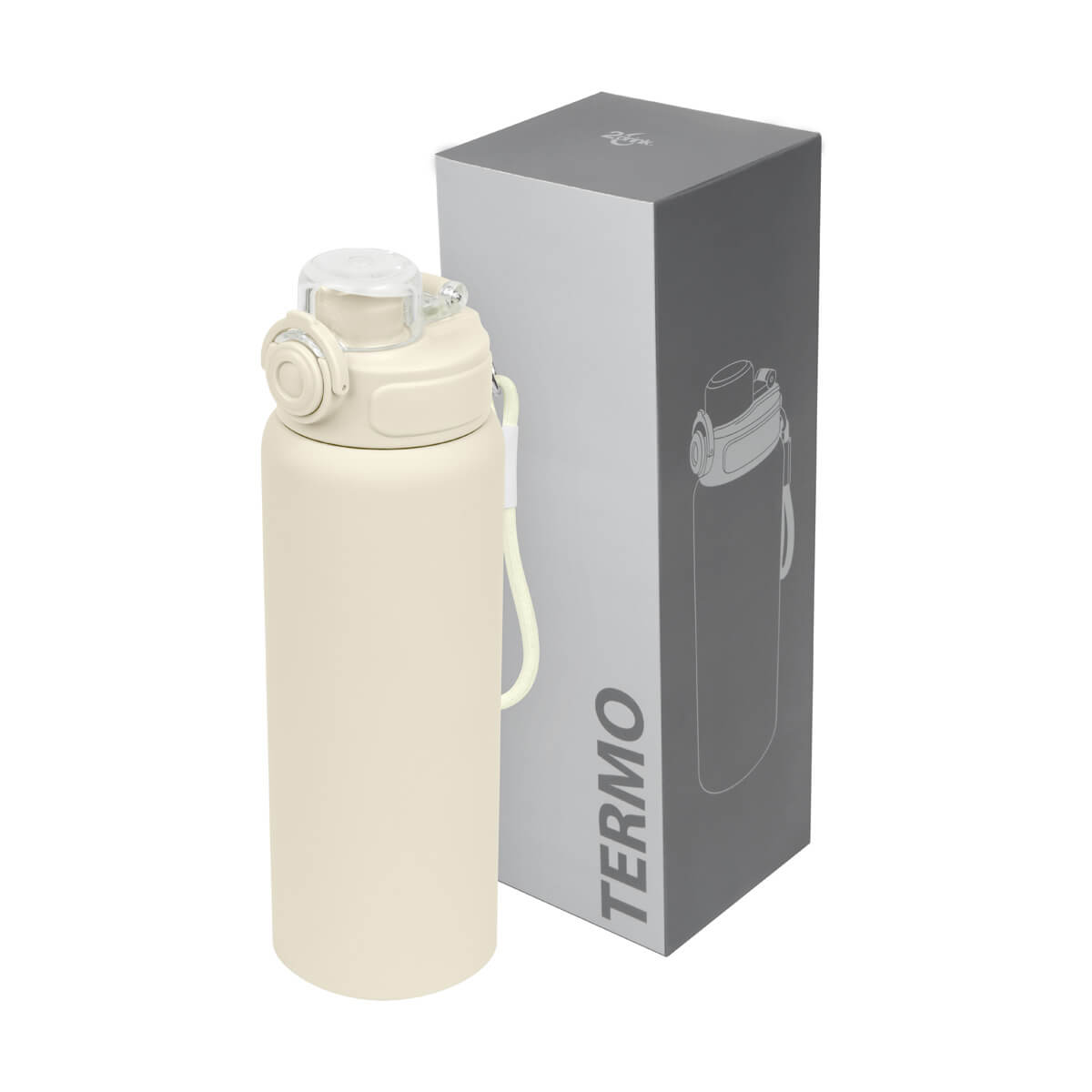 termo doble pared. cerrado al vacío. pared interna y externa de acero inoxidable. cuerpo con terminado tipo rubber, que lo hace suave al tacto. tapa con cierre de rosca y sobre tapa tipo push para mantenerla seguro y limpio. además con su nuevo diseño de boquilla, ofrece dos alternativas de uso, para beber normal o por medio de popote, ambas en la misma boquilla, sin ranuras adicionales. mantiene temperatura caliente y fría por 8 hrs. capacidad 27 oz. incluye asa de poliéster, popote de plástico y caja individual.