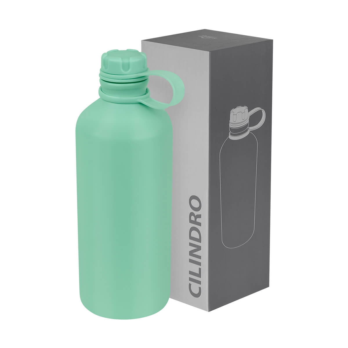 cilindro metálico de una pared con tapa de plástico y cierre de rosca que asegura un sellado total.el asa en la tapa permite transportarlo con mayor comodidad. ideal para uso diario, actividades deportivas o disfrutar de tus bebida en cualquier momento. capacidad de 20 oz. incluye caja individual.