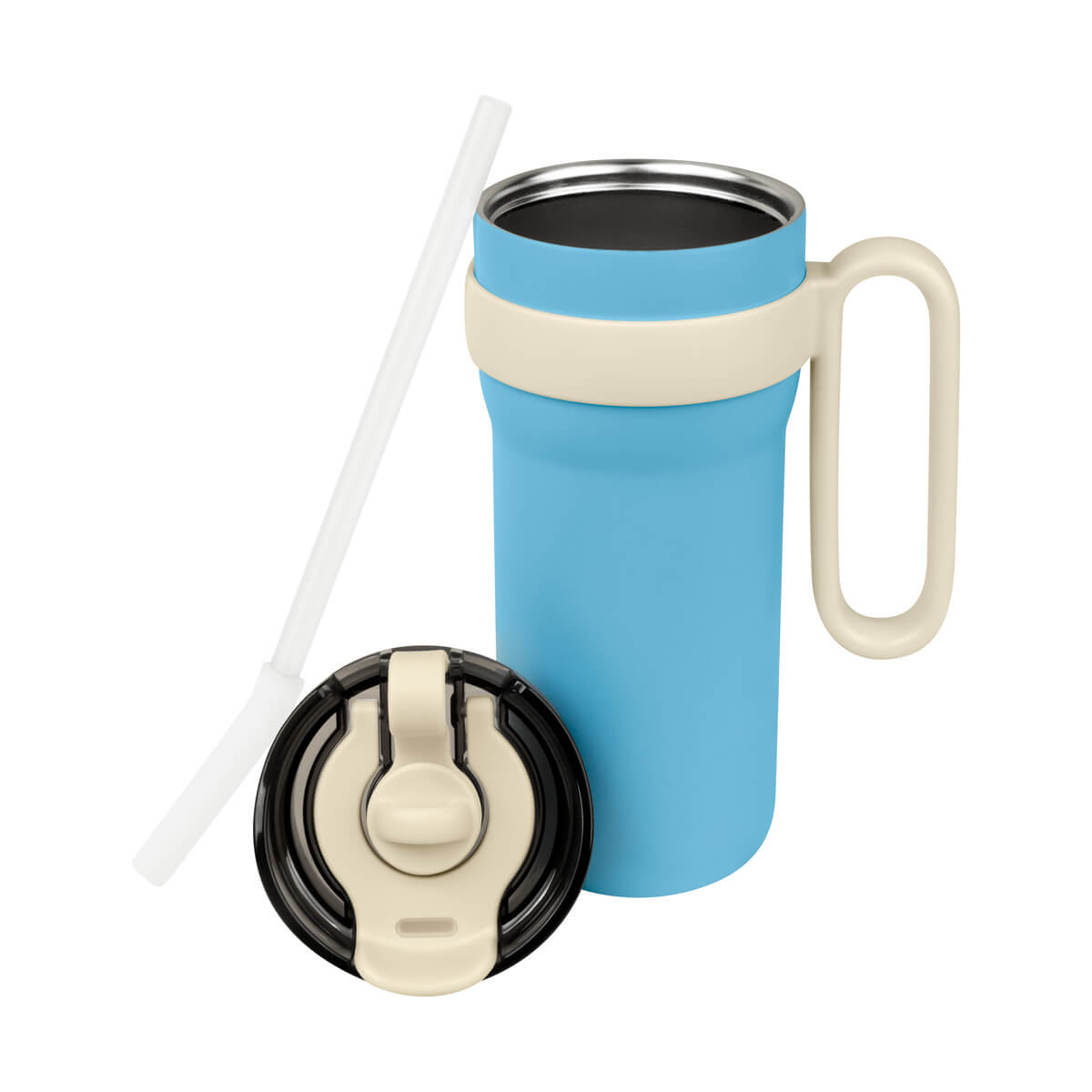 termo doble pared. cerrado al vacío. pared interna y externa de acero inoxidable. cuerpo con terminado rugoso. incluye tapa con cierre de rosca que ofrece dos alternativas de uso, sobretapa con sistema push y ranura especial para popote con aditamento para cerrar y evitar derrames. incluye popote de plástico que cuenta con un mecanismo de salida automática y una base de silicón, que lo eleva al abrir el compartimento. además, su original asa permite llevarlo cómodamente a cualquier lugar. mantiene temperatura caliente 6 hrs y temperatura fría 8 hrs. capacidad 30 oz. base de 8.5 cm de diámetro. incluye caja individual.