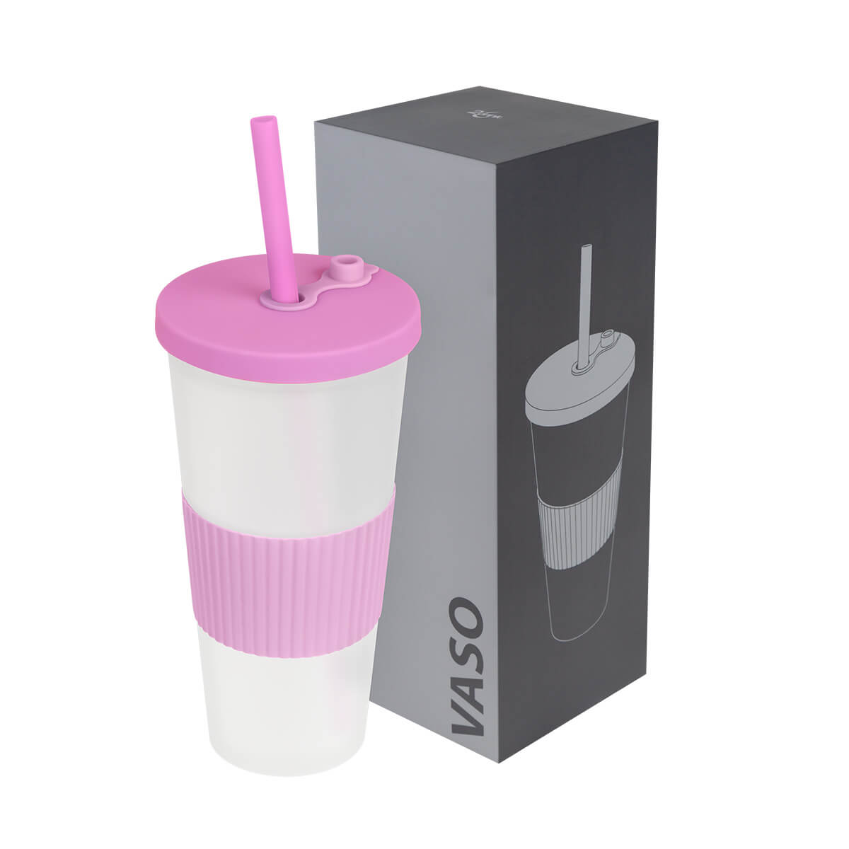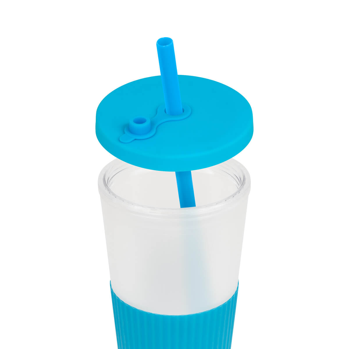 vaso doble pared. pared interna y externa de plástico. tapa de plástico con sistema de rosca. incluye popote. cuerpo frosty con terminado suave. su diseño con manga de silicón antideslizante garantiza un agarre cómodo y seguro. capacidad 22 oz. base de 6.4 cm de diámetro. caja individual incluida.