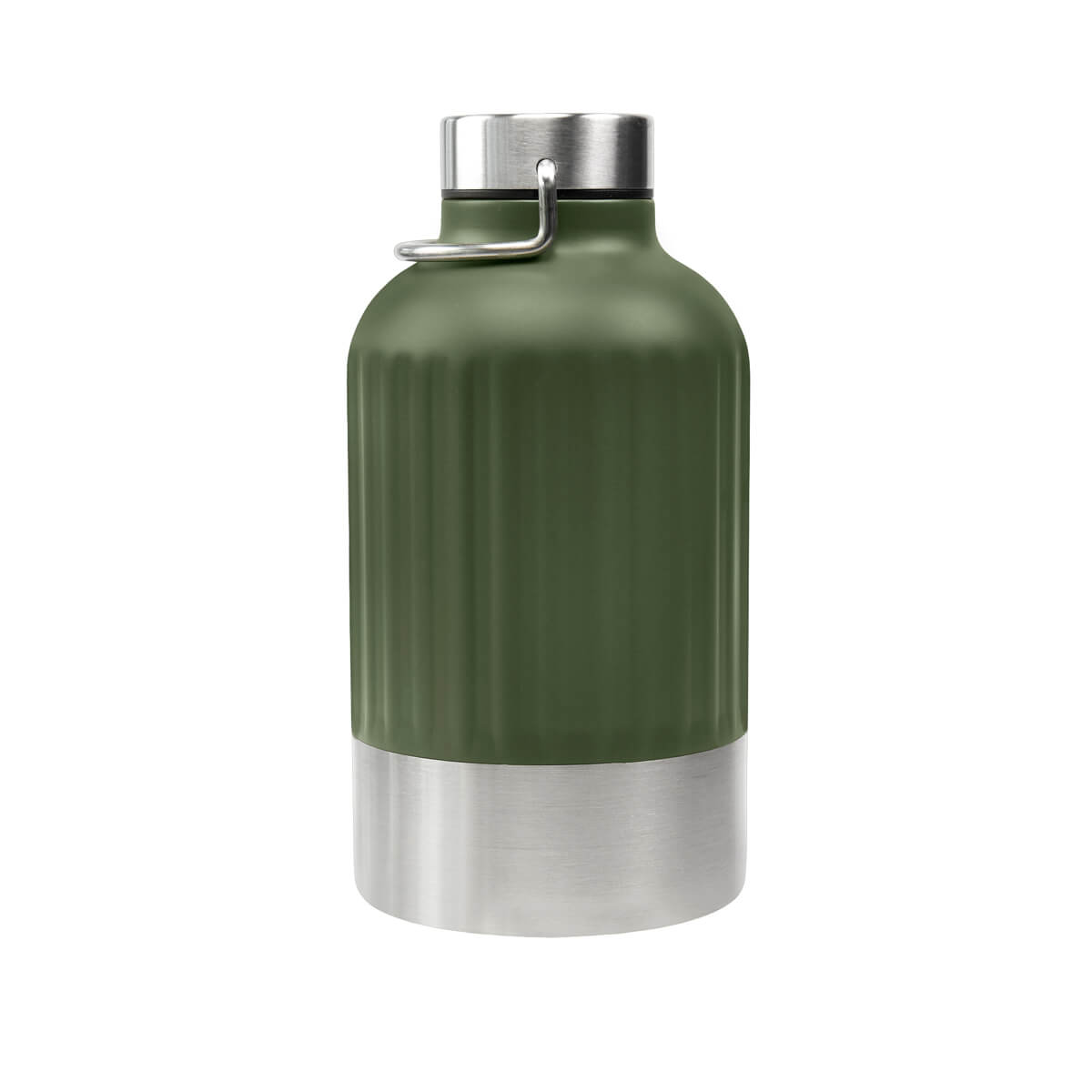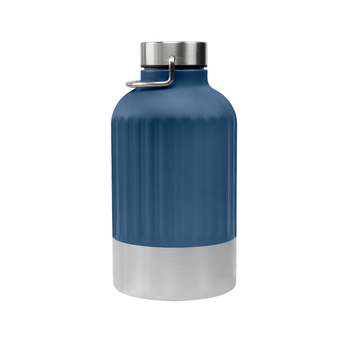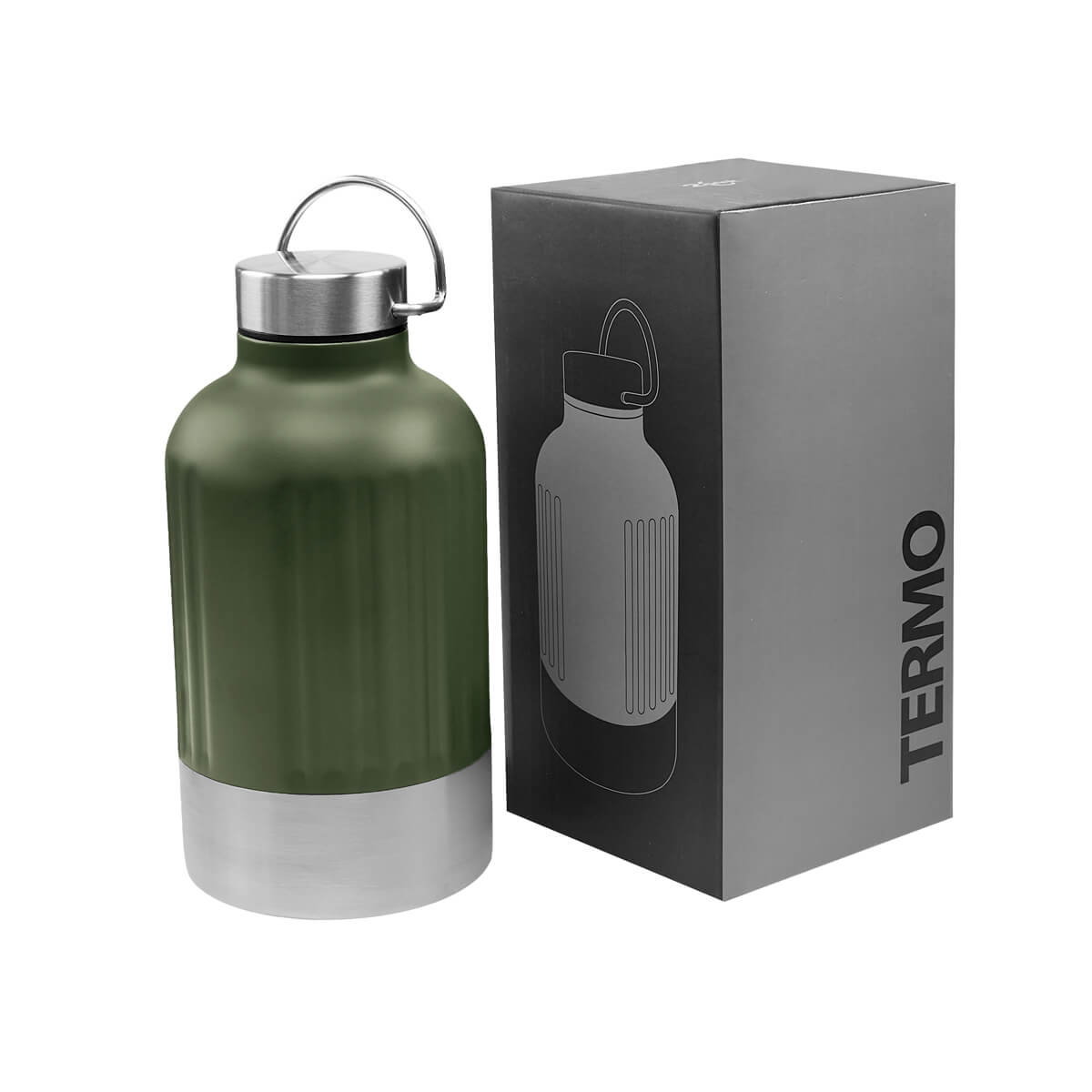 termo doble pared. cerrado al vacío. pared interna y externa de acero inoxidable. tapa con sistema de rosca compuesta de plástico y acero inoxidable. incluye un asa metálica para transportar con mayor comodidad. su diseño bitono, combina color y modernidad, mientras que su textura metálica con patrón de líneas verticales, le da un toque original y vanguardista. mantiene la temperatura caliente por 6 hrs y temperatura fría por 8 hrs. capacidad 23 oz. base de 9 cm de diámetro. incluye caja individual.