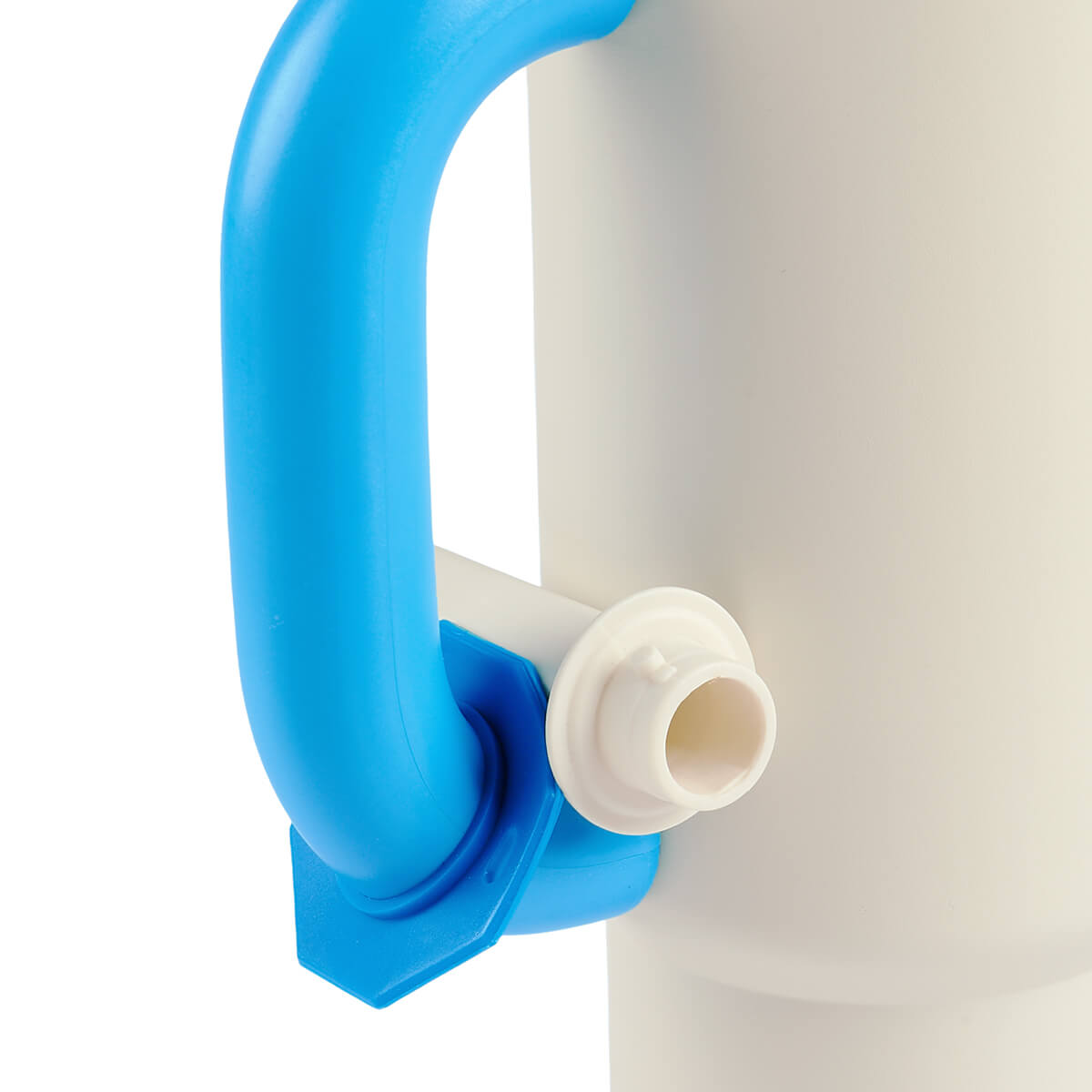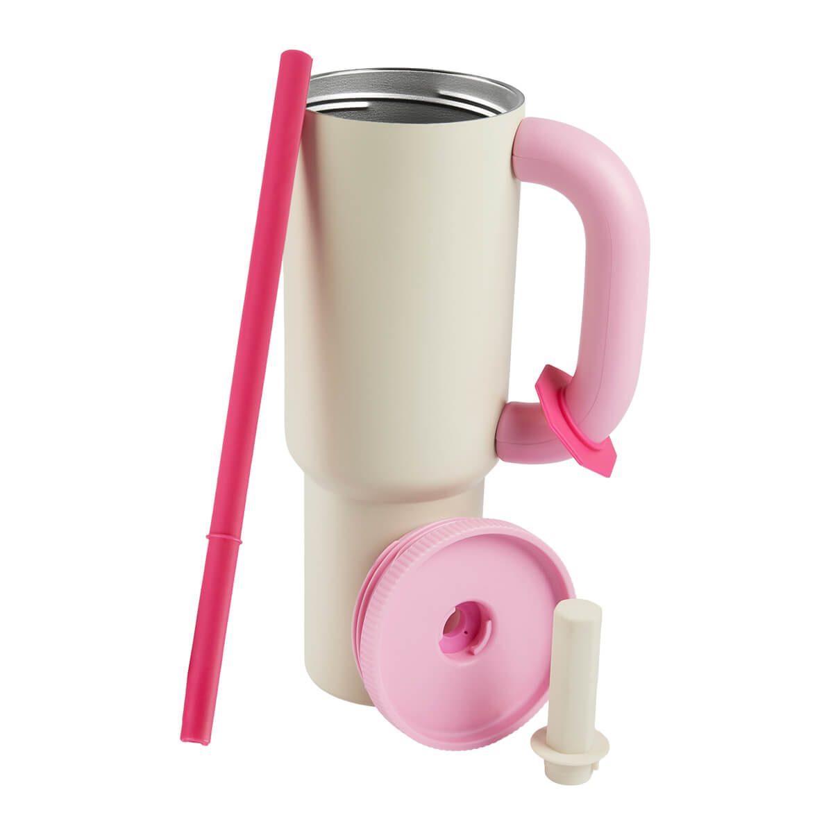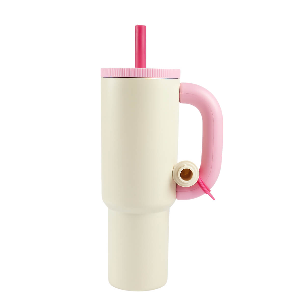 termo doble pared . cerrado al vacío. pared interna y externa de acero inoxidable. terminado en texturizado rugoso que le brinda un toque moderno y original. incluye tapa de plástico con sistema de rosca y popote más ancho, ideal para bebidas como frappes o licuados. su asa extra grande le permite un agarre más cómodo y seguro. además, cuenta con un tapón y un sistema de rosca que se integra de manera práctica al aditamento de silicón, evitando que se extravíe. ideal para llevar a todas partes con un look moderno y diferente. mantiene bebidas calientes por 6 hrs y frías hasta 12 hrs. capacidad de 40 oz. base de 8.3 cm de diámetro. incluye caja individual.