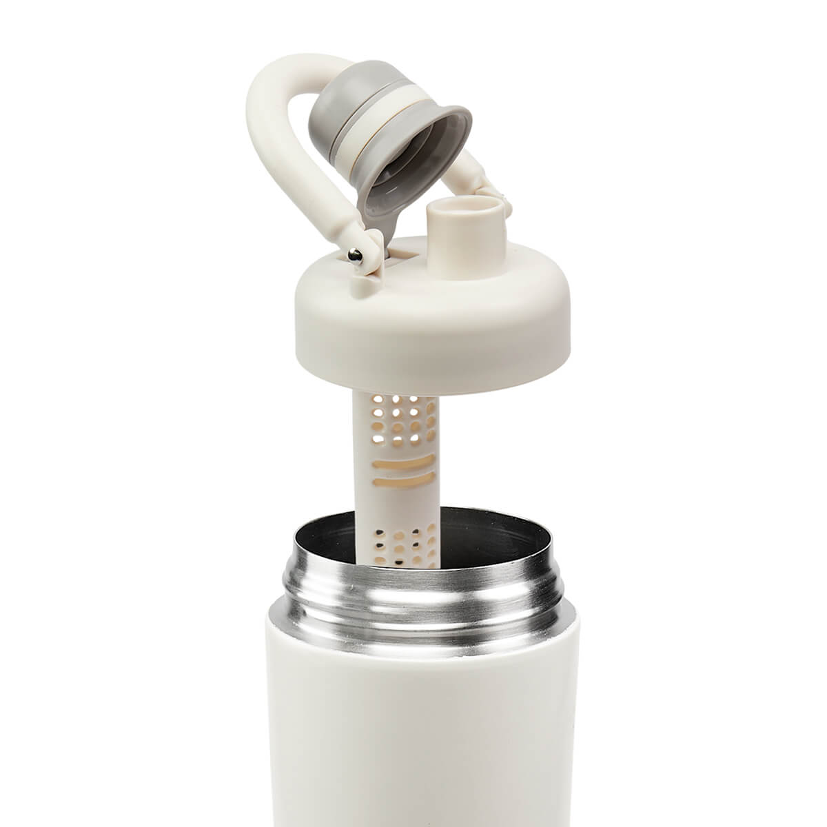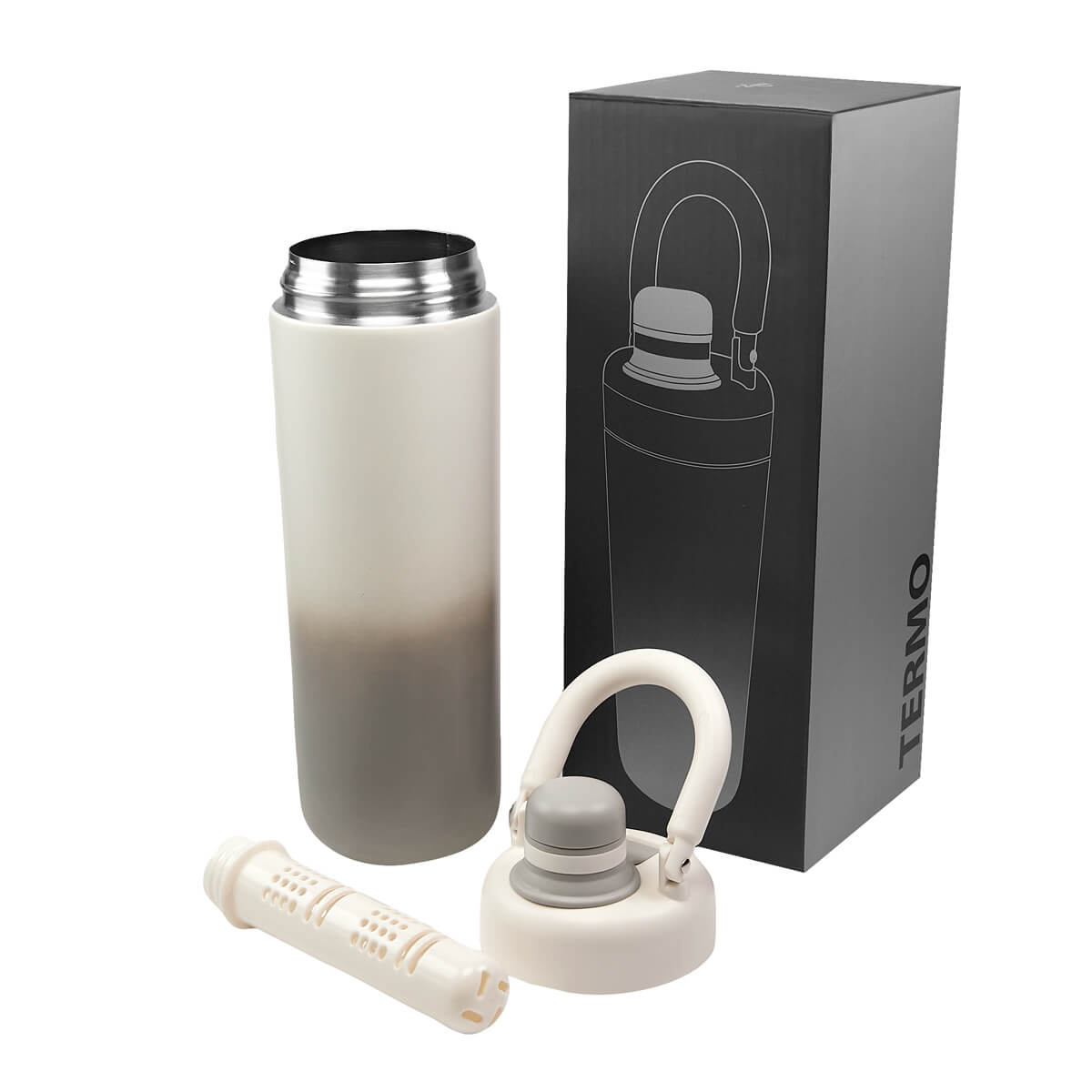 termo doble pared. cerrado al vacío. pared interna y externa de acero inoxidable. terminado en texturizado rugoso, que facilita su agarre. incluye tapa de plástico con sistema de rosca, sobre tapa con boquilla y filtro interno para infusiones o tisanas. su diseño elegante y minimalista se complementa con un asa ergonómica que facilita el transporte, ideal para transportarlo a donde quiera que vayas. el termo está pintado a mano, por lo tanto el color y degradado pueden variar en todos los modelos. mantiene tus bebidas calientes por 6 hrs y frías hasta 12 hrs. capacidad de 27 oz. incluye caja individual.