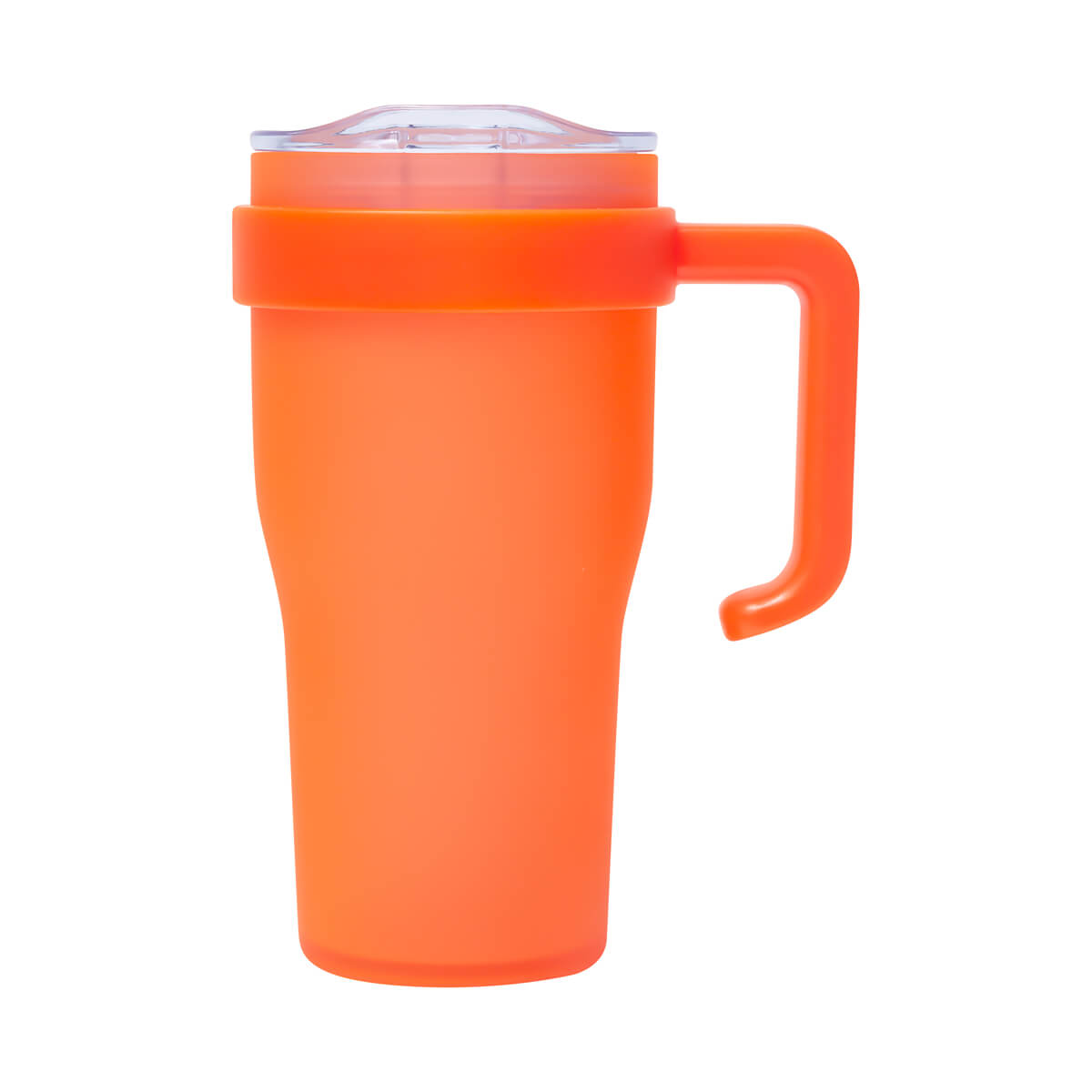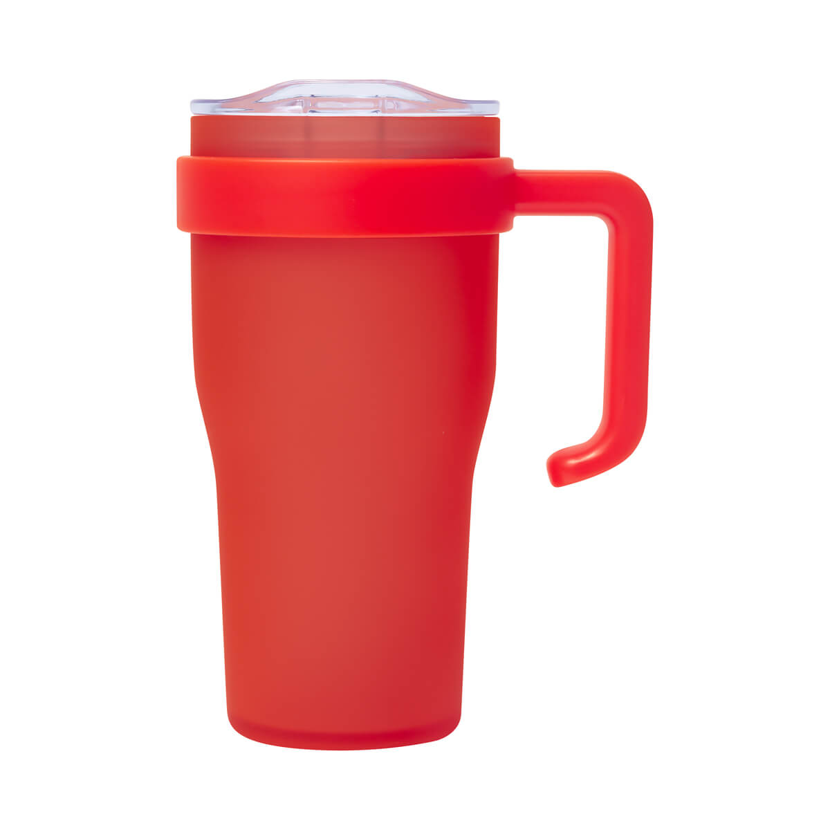 termo de plástico de pared sencilla. incluye tapa de plástico con cierre push y válvula de seguridad. asa de plástico para facil transportación, además, por su tamaño, es ideal para utilizarlo en el coche, scuela u oficina. capacidad de 20 oz. base de 6.8 cm de diámetro. incluye caja individual.