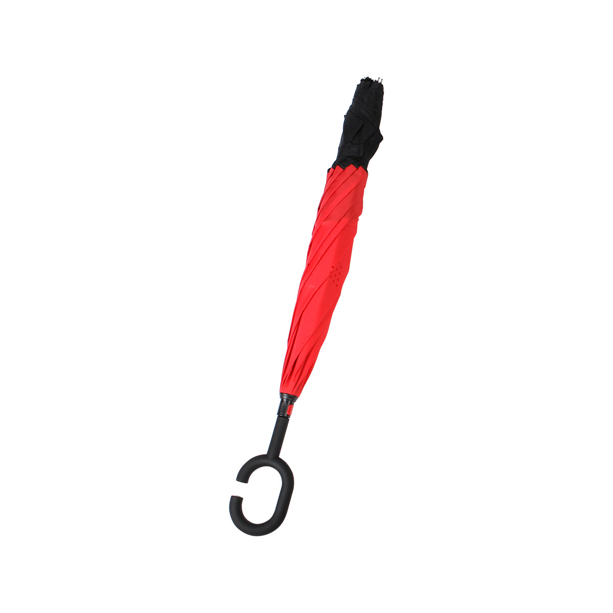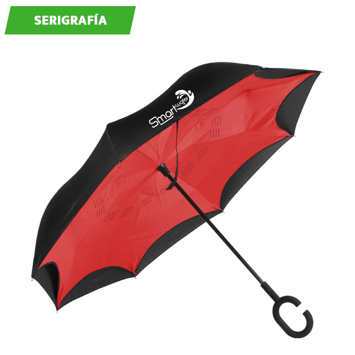 paraguas invertido bi-tono automático fabricado en pongee con 8 gajos, color exterior negro con interiores a color.