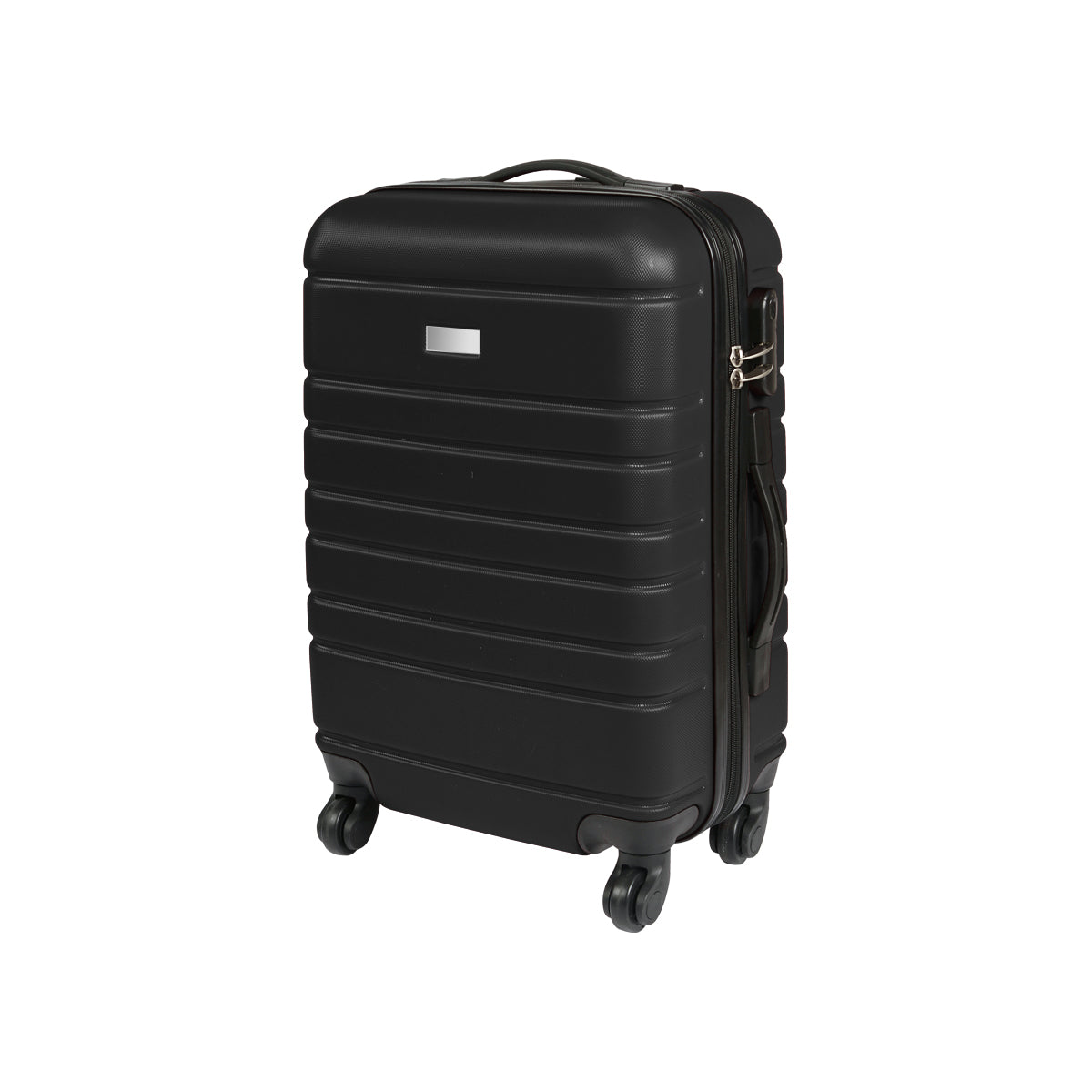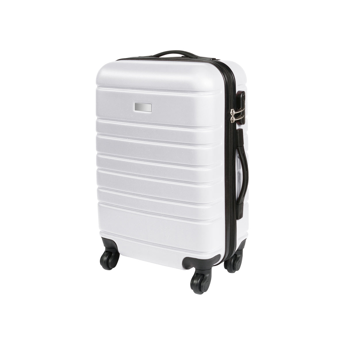 maleta rígida de viaje con exterior fabricado en plástico abs e interiores en poliéster, con mango retráctil de aluminio, 4 ruedas resistentes, 2 agarraderas para poder cargarla horizontal o verticalmente, chapa de seguridad con 3 dígitos de combinación y placa metálica para grabado. capacidad de carga de 10 kg.
