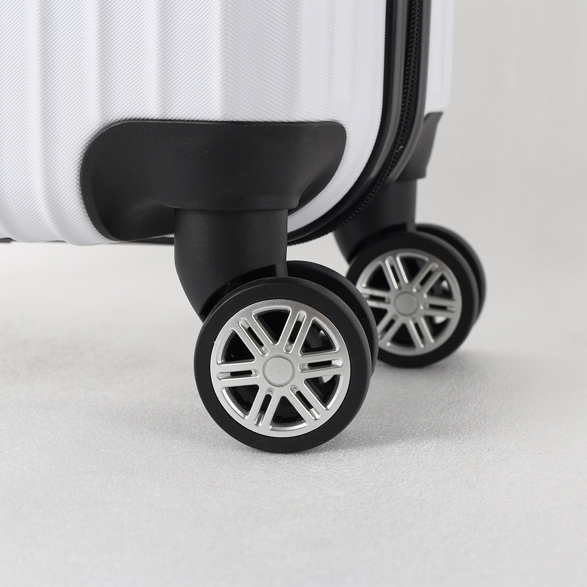 maleta rígida de viaje tipo carry on con ruedas fabricada en abs con mango retráctil de aluminio interiores en poliéster, chapa de seguridad, placametálica, compartimento interior con cierre y tensor para ropa. capacidad de carga de 10 kg.