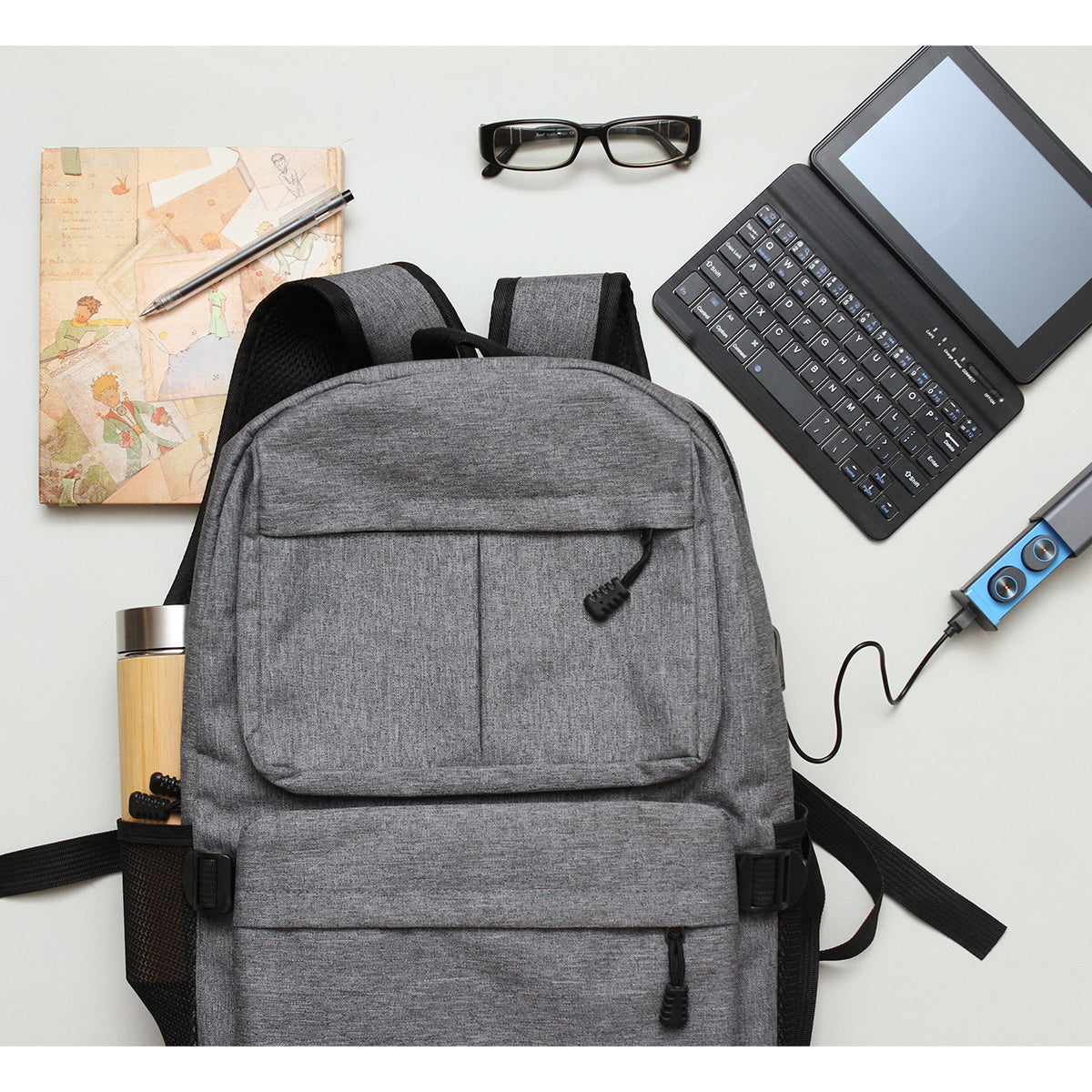 mochila porta laptop con salida para puerto de carga usb, cuenta con bolsillos frontales con cierre y dos bolsillos laterales donde puedes guardar tus objetos más pequeños. las correas de hombro son ajustables lo cual te brinda la posibilidad de adaptarla a tu comodidad, y cuenta con un asa superior resistente.