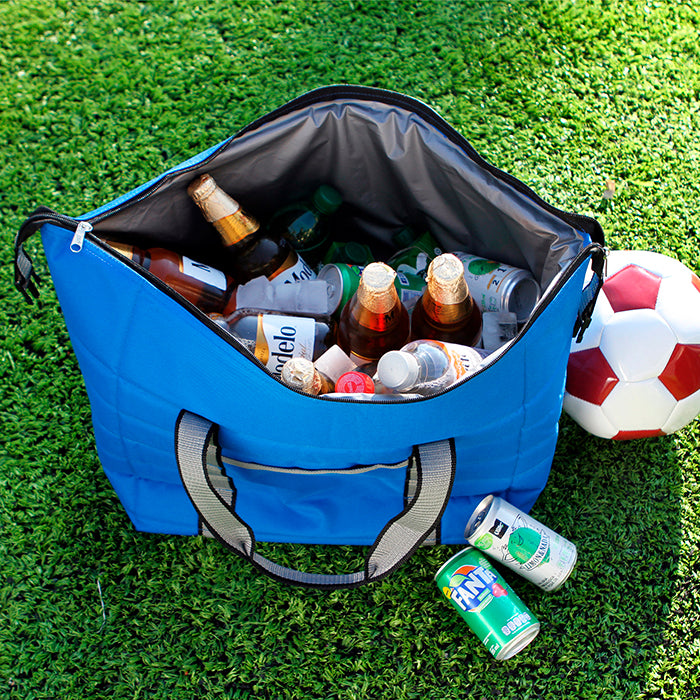 fabricada en resistente poliéster, cuenta con un compartimento principal de 37 litros con cierre superior, ideal para conservar bebidas y alimentos por más tiempo. su diseño incluye un bolsillo exterior para artículos pequeños y asas reforzadas con soporte acolchonado, que brindan mayor comodidad al cargarla. perfecta para escapadas al aire libre, picnics o eventos corporativos.