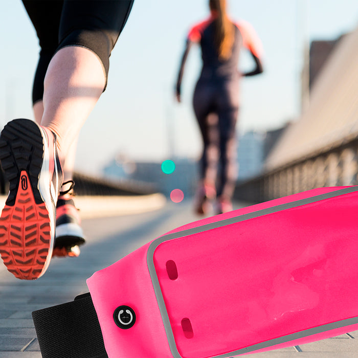 cangurera / riñonera ajustable, con compartimento para celular y salida para audífonos. ligero, transpirable y flexible.