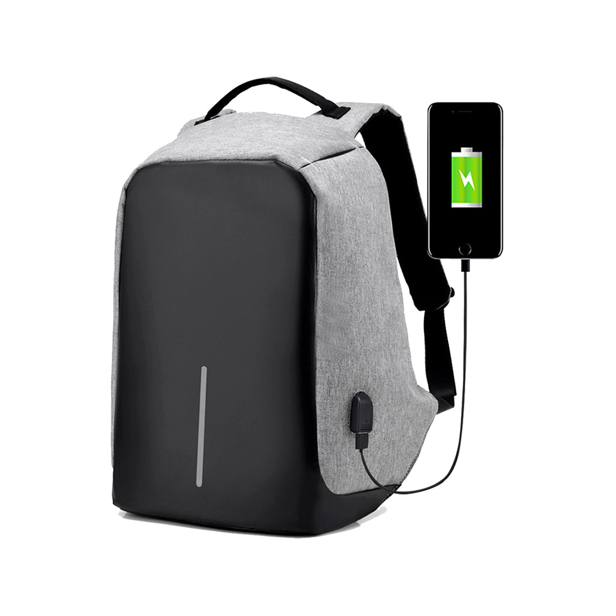 mochila backpack fabricada en poliéster, con sistema anti robo, compartimento para laptop, cierre de cremallera, bolsillos ocultos, puerto integrado de carga usb, correas de seguridad, tejido repelente al agua y gran capacidad de guarda.