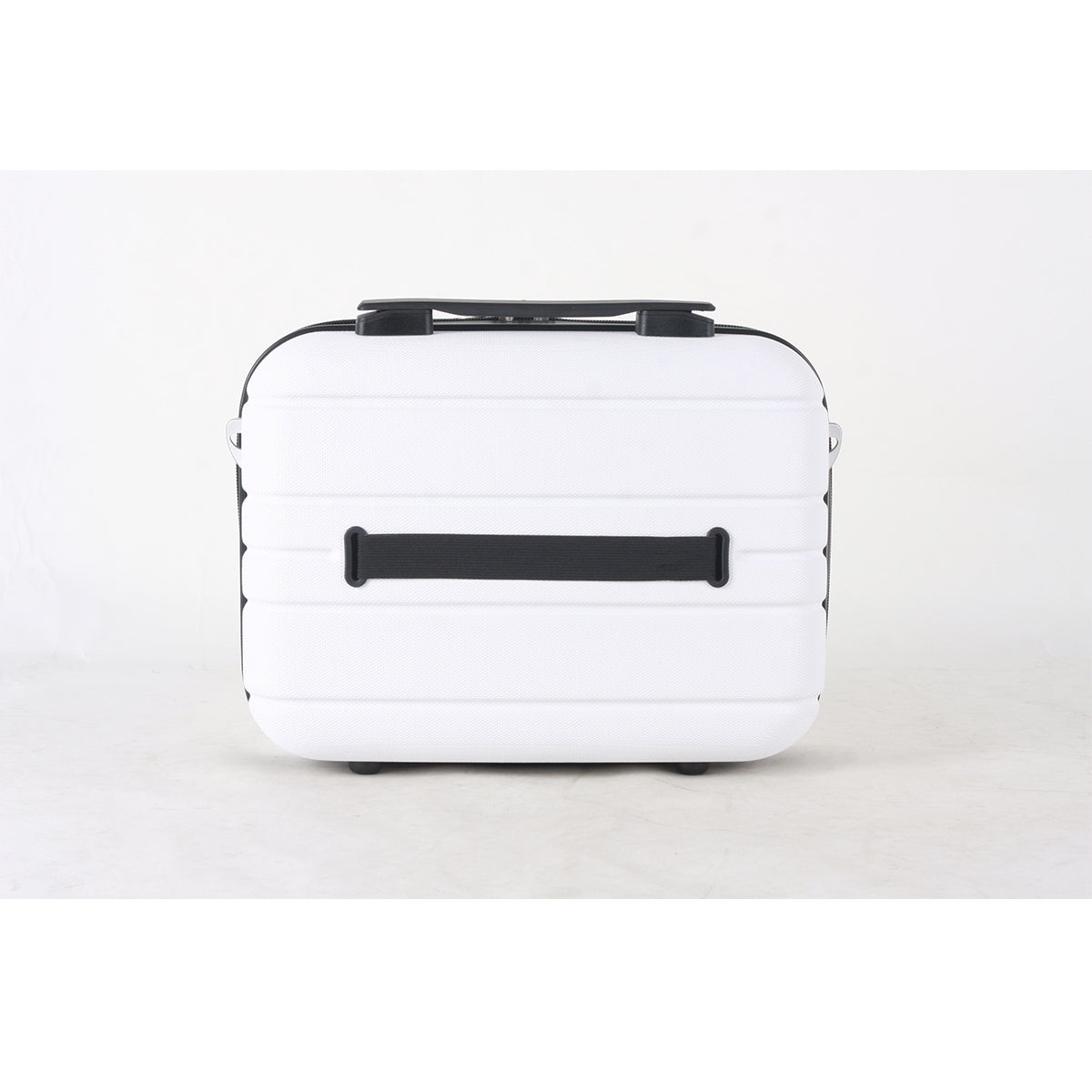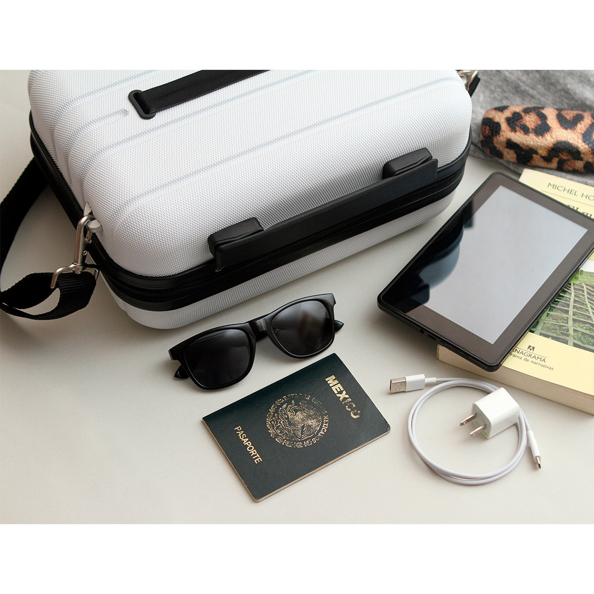 neceser para viaje fabricado en plástico abs con interiores de poliéster. incluye placa metálica para grabado laser, banda elástica, asa superior y correa de hombro ajustable.