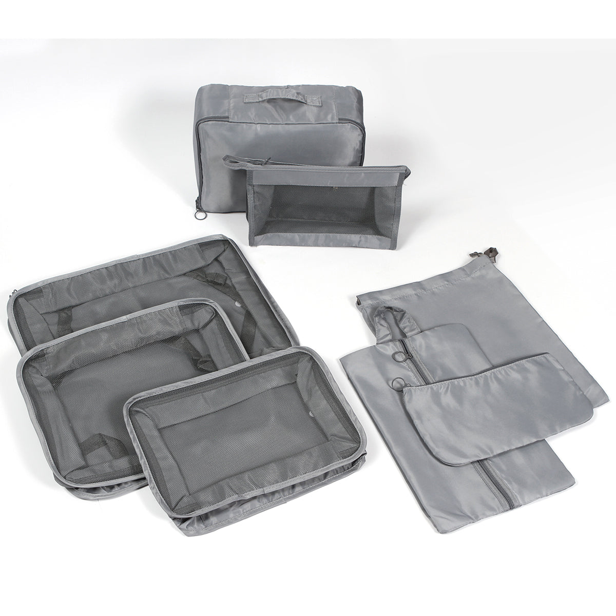 set de 8 bolsos organizadores de equipaje, fabricados en poliéster de alta calidad, es duradero y tiene una textura suave, incluye 3 bolsos para lavandería en 3 medidas diferentes, bolso para ropa interior, para calzado, artículos de aseo personal, para cosméticos y bolsa multiusos con jareta, este articulo es tu compañero perfecto para viajar, acampar, separa ropa de gimnasio o ir a la playa. creadas con tela de revestimiento son impermeables y enmalladas en poliéster, altamente resistente, repele el agua, a prueba de polvo y transpirable, evita el crecimiento de bacterias, reduce olores, organiza el espacio de tu equipaje de una manera razonable sin líos haciendo espacio suficiente para todo.