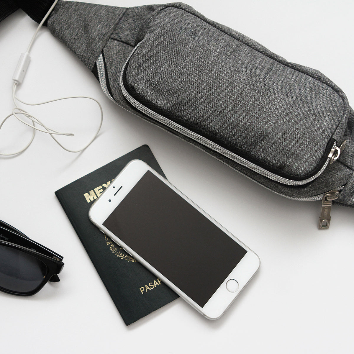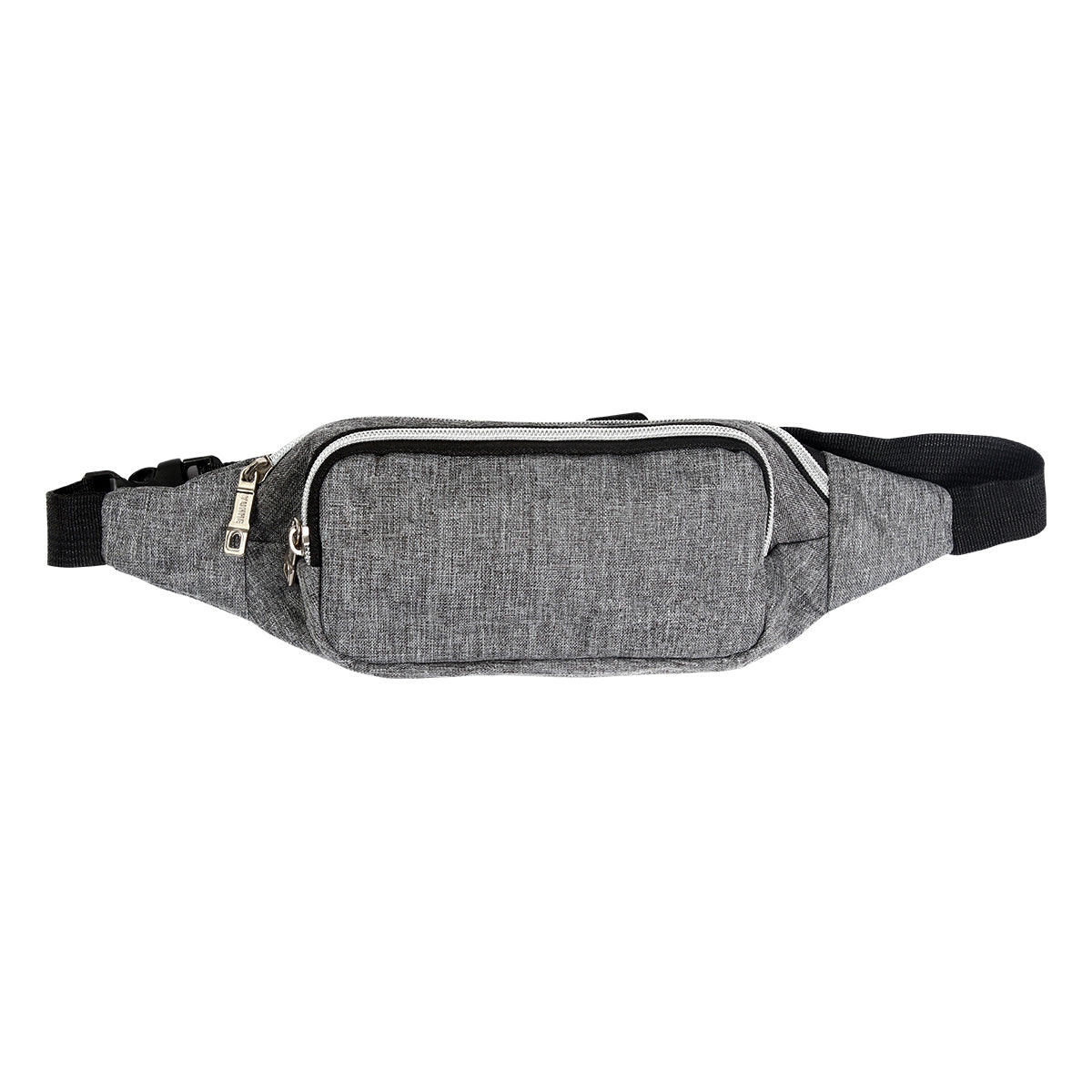 cangurera / riñonera fabricada en poliéster, nylon y polipropileno; doble bolsa con cierre, correa ajustable y resistente con broche de seguridad. excelente tamaño para guardar varios artículos como celular, monedas y audífonos.