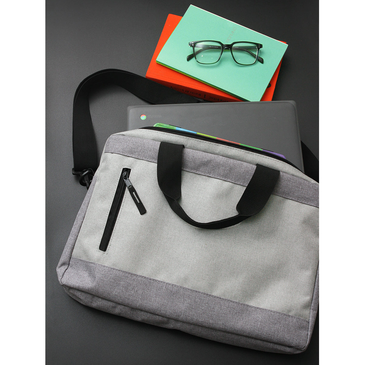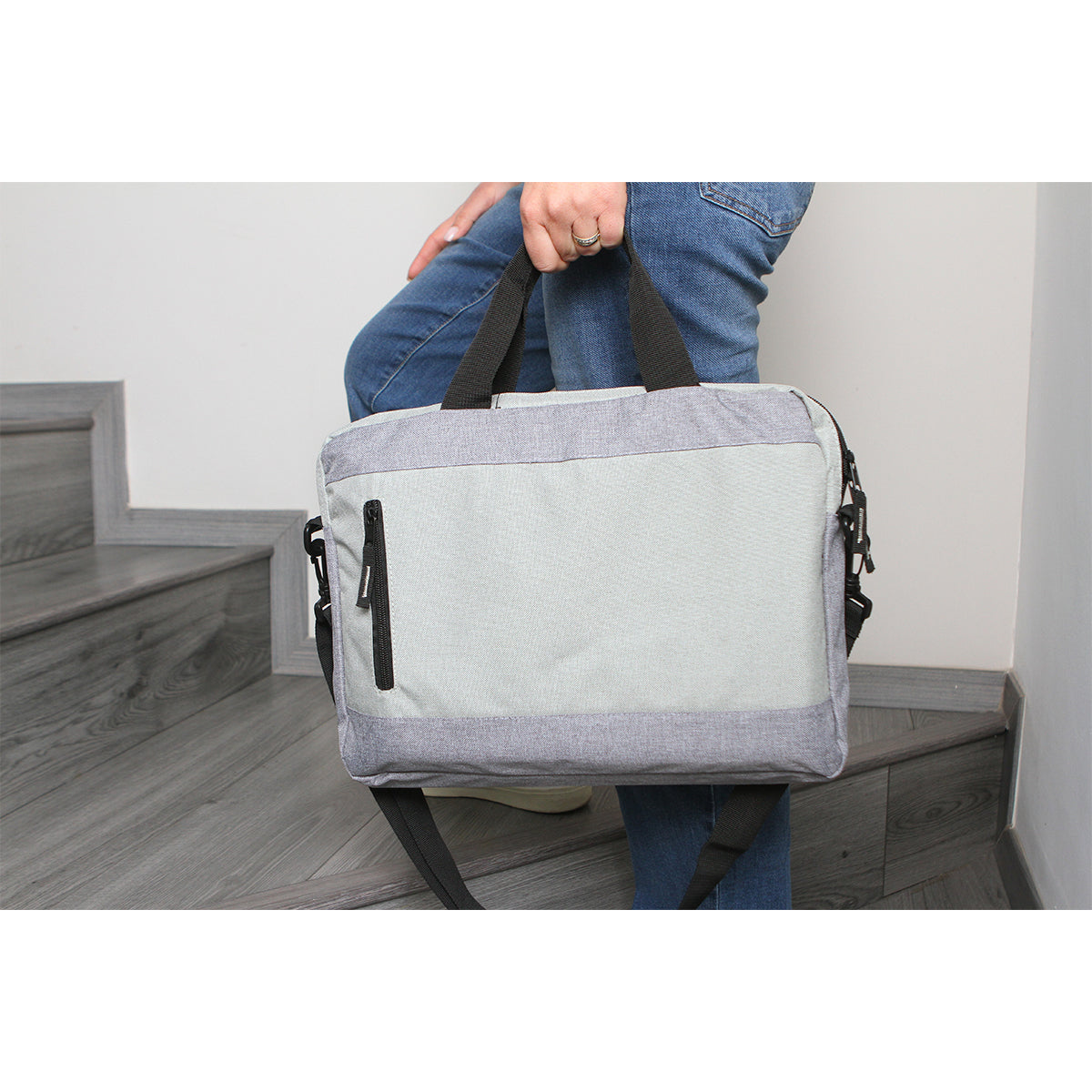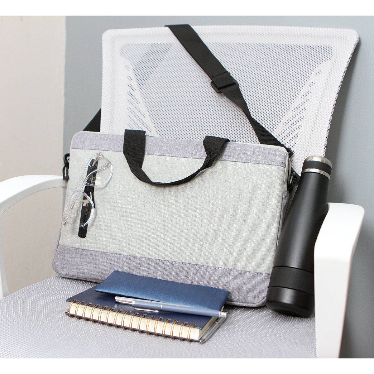 portafolio bi-tono fabricado en poliéster, con correa de hombro ajustable y desmontable, bolsillo frontal y asas superiores. increíble opción para transportar de manera segura tu laptop y ya no tendrás que preocuparte por dañar tu dispositivo mientras te desplazas.