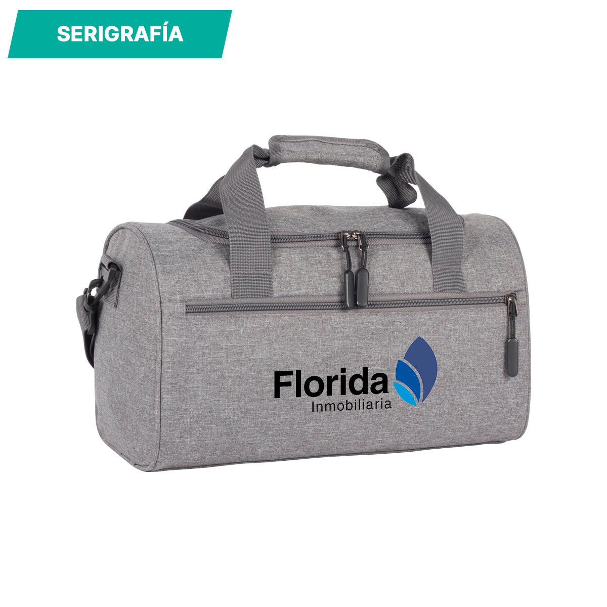 maleta deportiva compacta fabricada en poliéster con bolsillo frontal, bolsillo lateral de malla, asas superiores, correa para hombro ajustable y desmontable. costuras 100% resistentes para una máxima durabilidad.