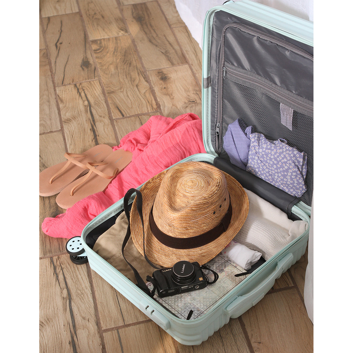 maleta rígida tipo carry-on de 18", fabricada en plástico abs y pc, con 4 ruedas giratorias, mango retráctil de aluminio, interiores en poliéster, chapa de seguridad, placa metálica y compartimento doble en el interior con cierre. prepara tus viajes con confianza y tranquilidad, sabiendo que tus pertenencias estarán seguras y organizadas en esta maleta diseñada para brindarte una experiencia de viaje excepcional. capacidad de carga de 15 kg.