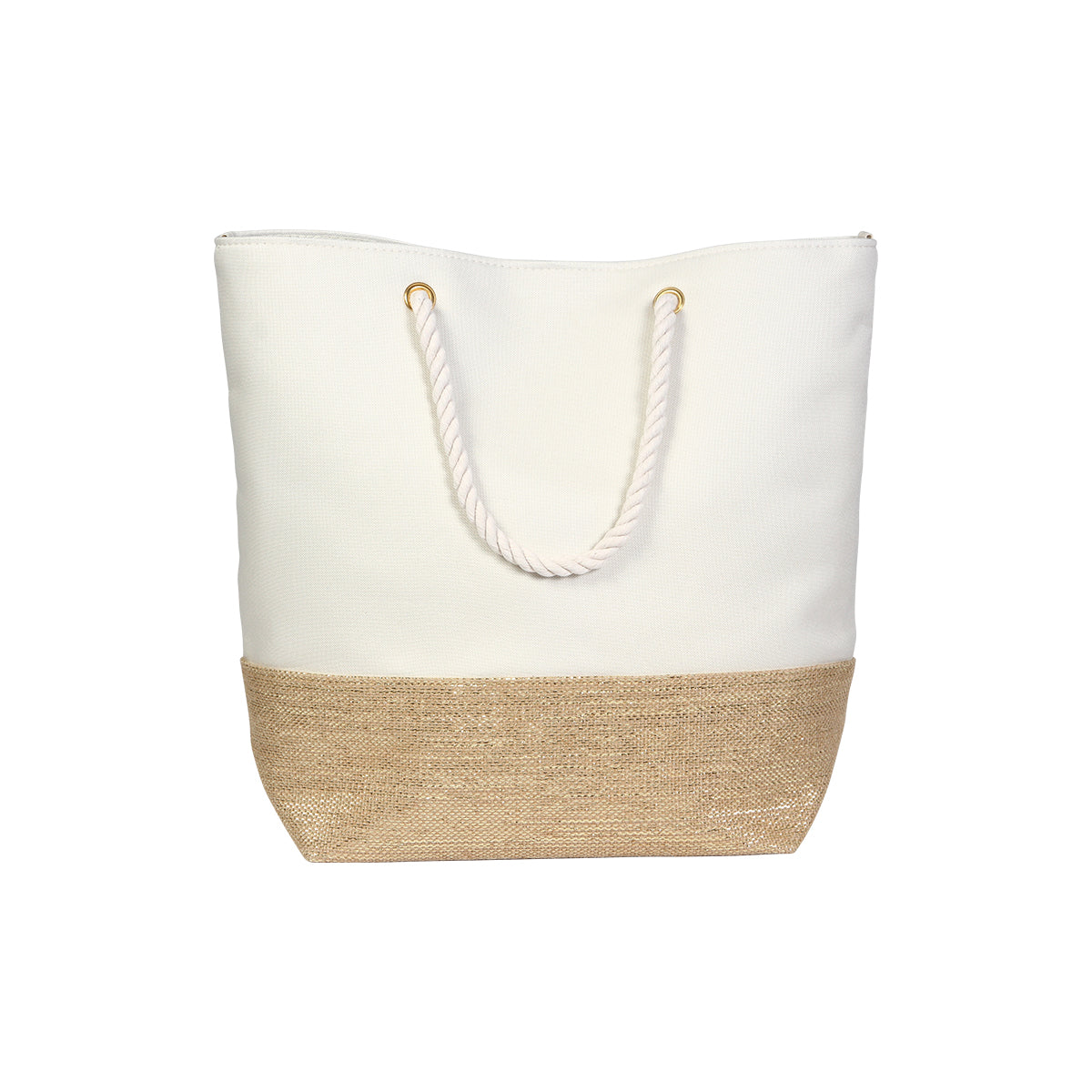 bolsa de playa fabricada en poliéster y yute con asas tipo jareta es un accesorio imprescindible para tus días de playa y vacaciones. su resistencia y capacidad de almacenamiento la hacen el accesorio perfecto para tus viajes.
