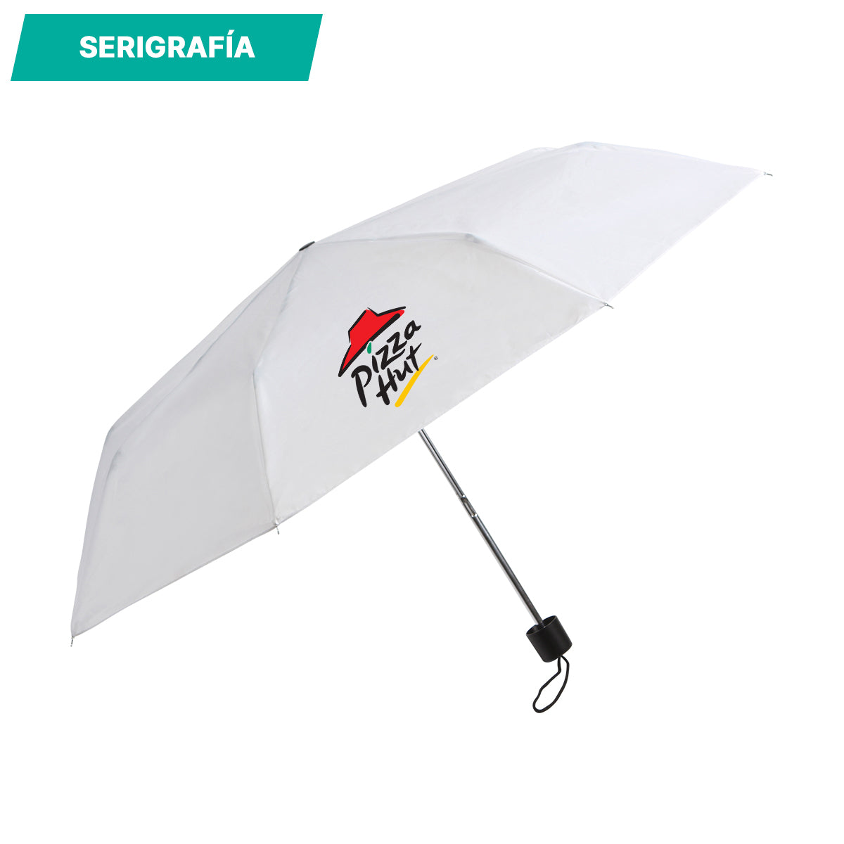 paraguas plegable de 8 varillas 170t poliester. diseño compacto y ligero que permite llevarlo fácilmente. las varillas, el eje y las costillas están fabricadas en metal y cuenta con un mango ergonómico fabricado en plástico abs, lo que le brinda un agarre cómodo y antideslizante.