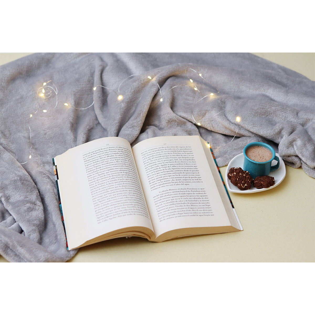esta cobija está confeccionada con un suave y esponjoso tejido de felpa, que brinda una sensación suave al tacto y una calidez reconfortante, con un accesorio ajustador con velcro que te ayudará a empacar la frazada y así llevarla a todos lados.