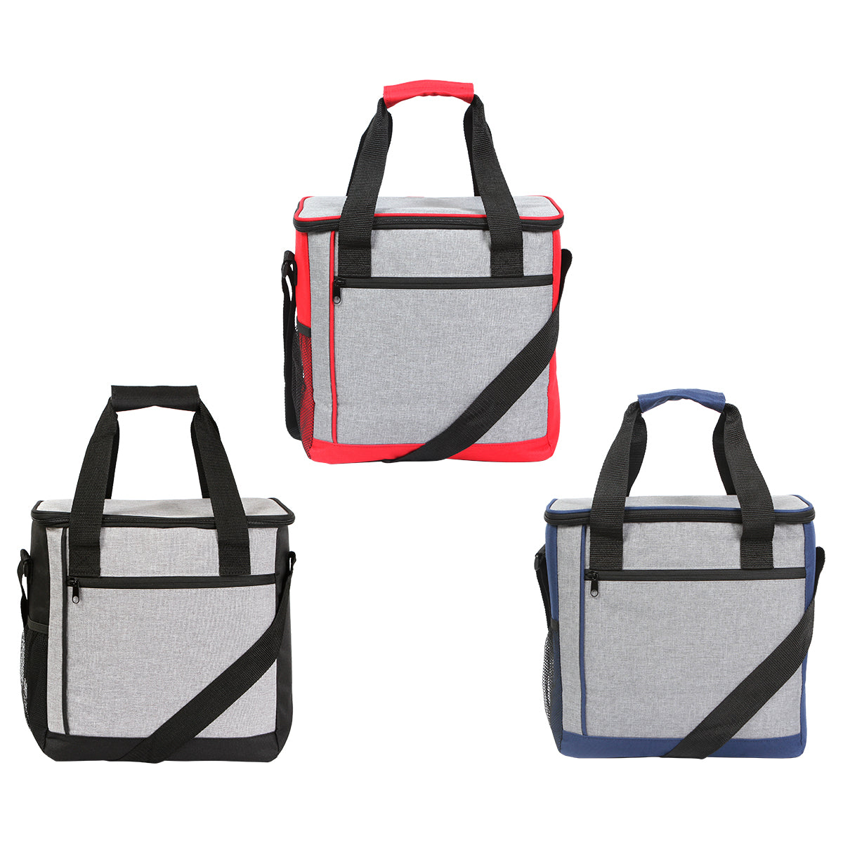 hielera con interior fabricado en poliéster y forro elaborado en acetato de vinilo y polietileno (peva). con cierre y dos asas.