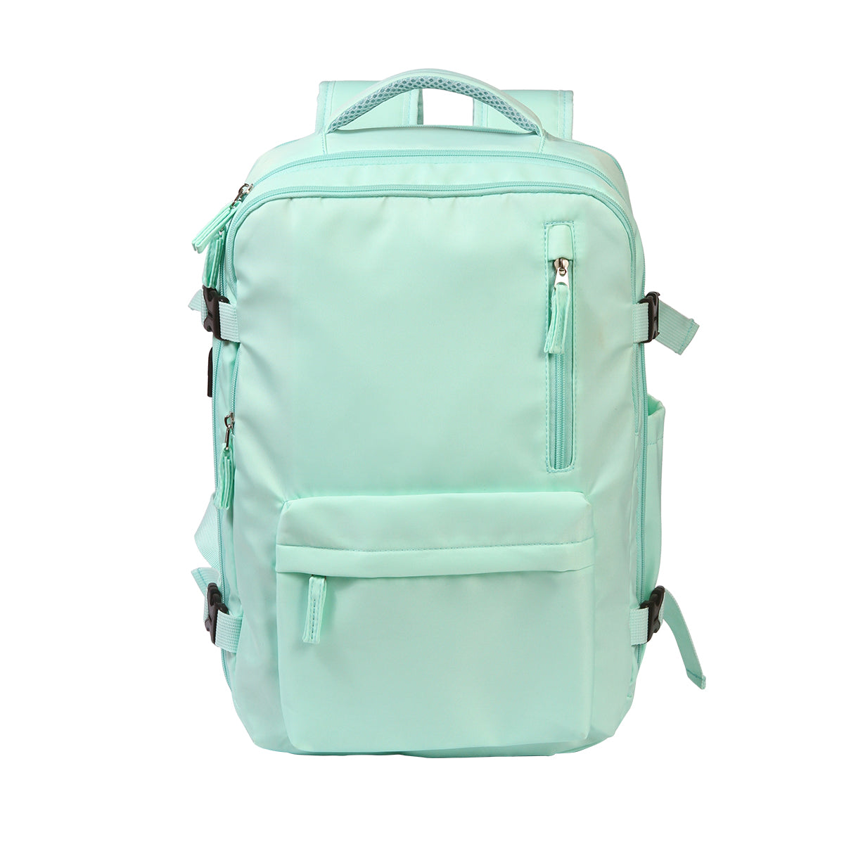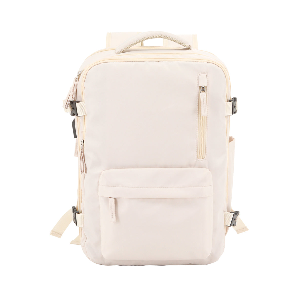 mochila de poliéster 290d, ligera y resistente, con cuatro compartimentos y bolsa acolchada para laptop. incluye salida de cable para cargar dispositivos y correas ajustables acolchadas para mayor comodidad. hebillas laterales para ajuste de volumen. ideal para escuela, trabajo o viaje.