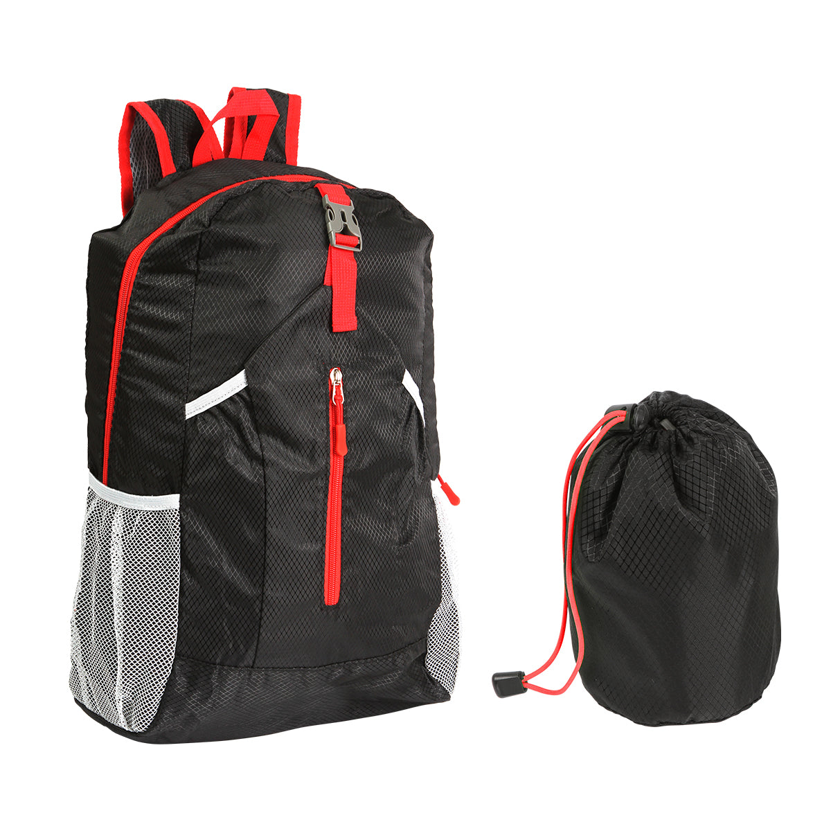 mochila que se compacta, fabricada en nylon, ligera, con bolsa de almacenamiento, fácil de transportar. tratamiento superficial con repelente al agua, ideal para viajes al aire libre. correas portátiles de alta densidad para un uso flexible. correas de hombro transpirables para aliviar la fatiga. capacidad: 24 l.