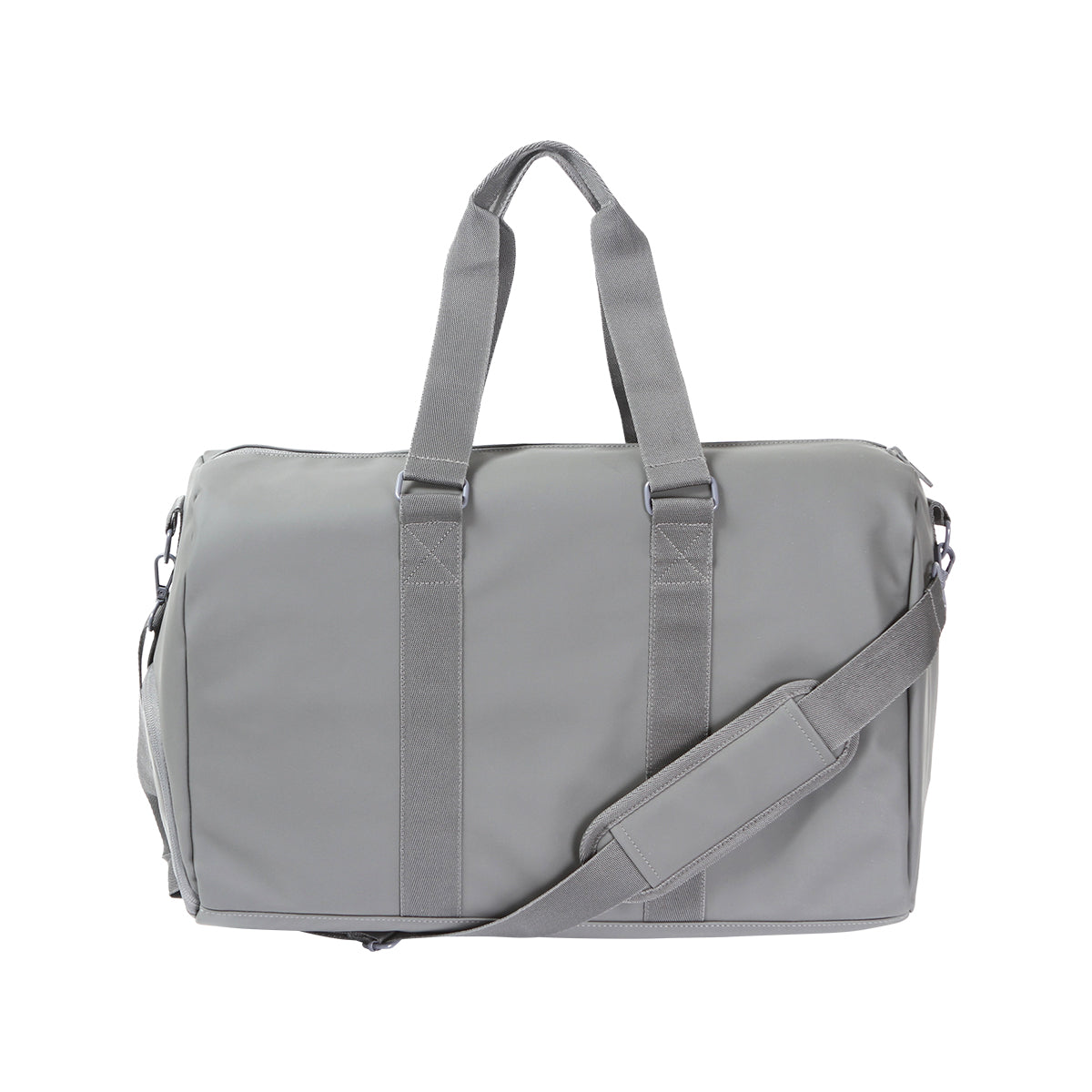 maleta de viaje fabricada en cuero sintético (pu) mate y forro de poliéster pongis. un compartimento principal, bolsillo lateral para zapatos, correa ajustable para el hombro. hebillas metálicas mate de 1.5”.
